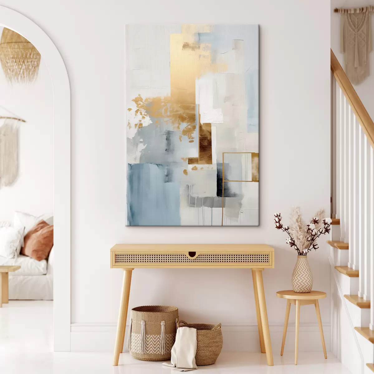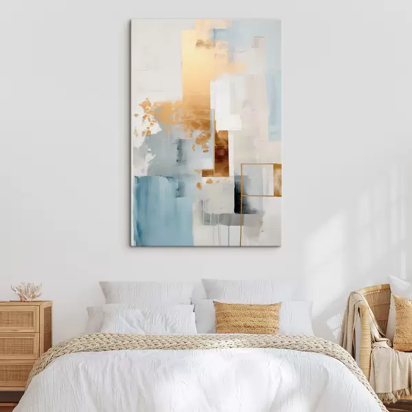 Wandbilder Abstrakte geometrische Formen in Gelb, Blau und Weiß, strukturierte und minimalistische Komposition Art. s47881