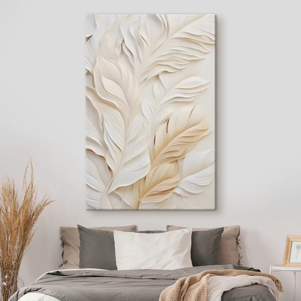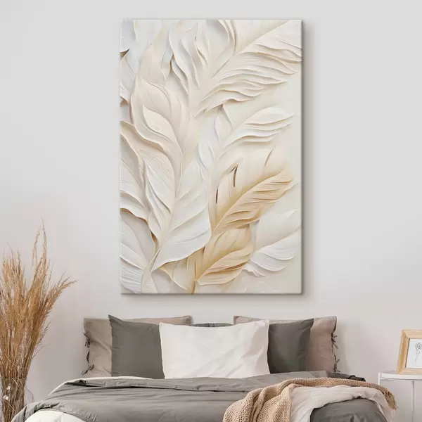 Wandbilder Cremefarbene Federn, die sich überlappen, mit einem weichen, hellen Hintergrund Art. s47884