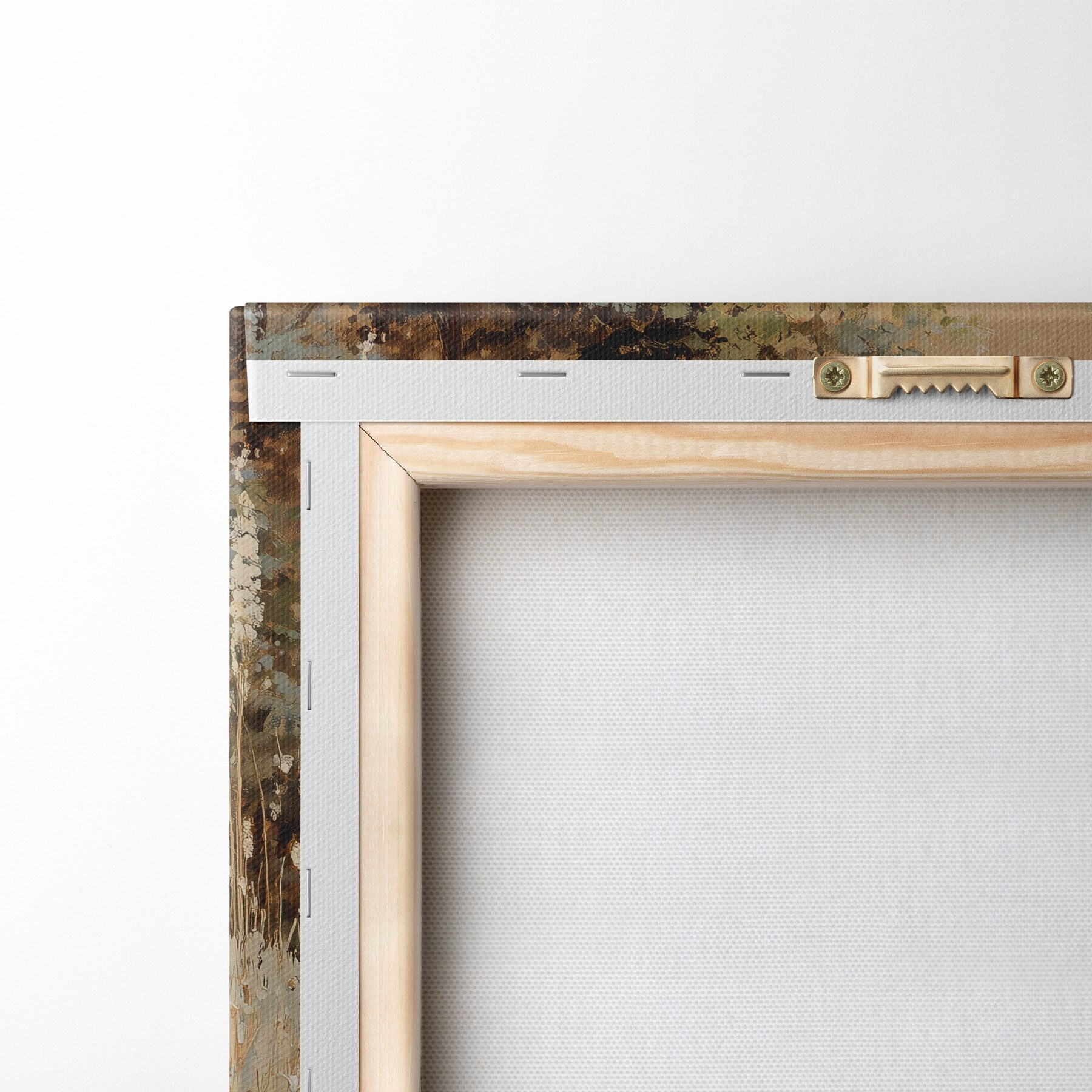 Um die Leinwand auf Keilrahmen zu spannen, ohne das Bild zu beschädigen, verwenden wir ein gespiegeltes Bild.