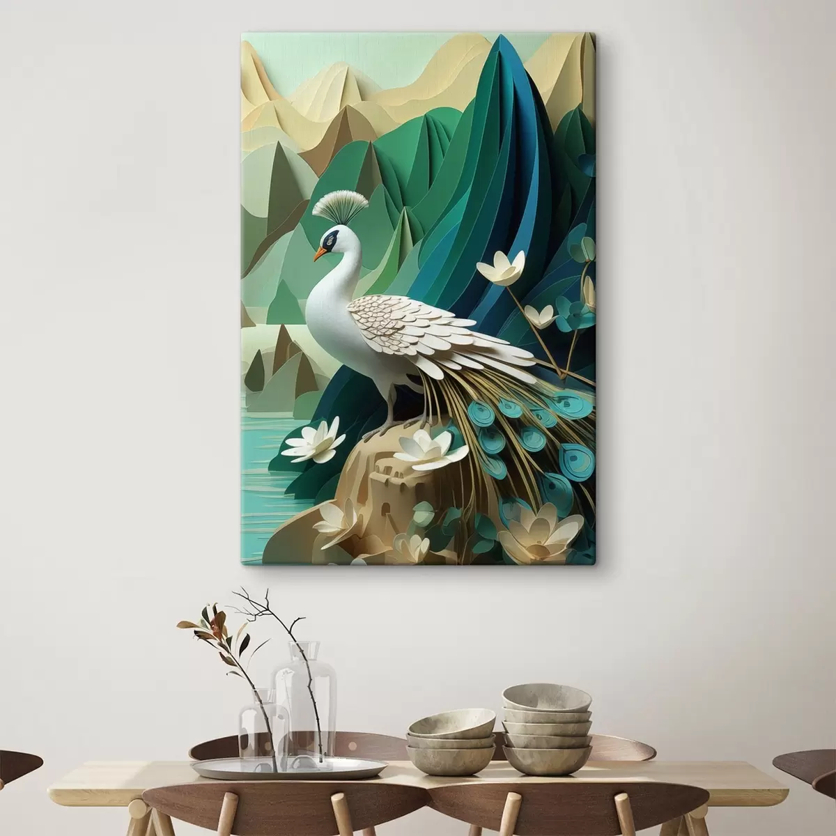 Wandbilder Pfau auf grünem Hintergrund Art. s47901