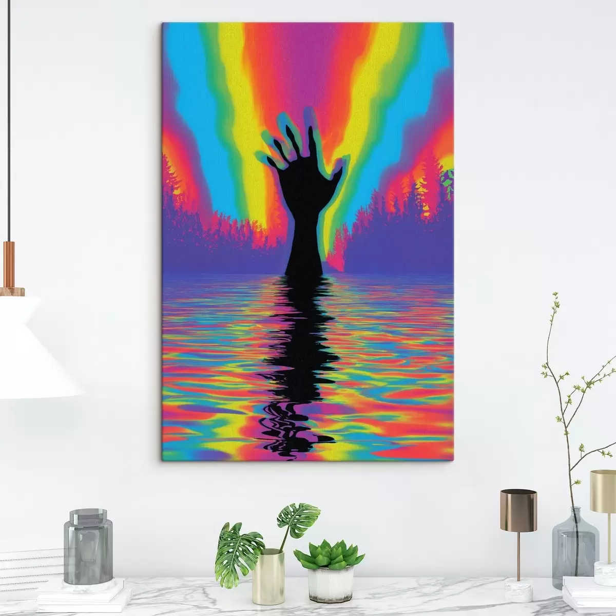 Wir empfehlen, das Bild nicht direkt unter Sonnenlicht oder in einem feuchten Raum aufzustellen. Dies kann die Helligkeit des Bildes mit der Zeit beeinträchtigen.