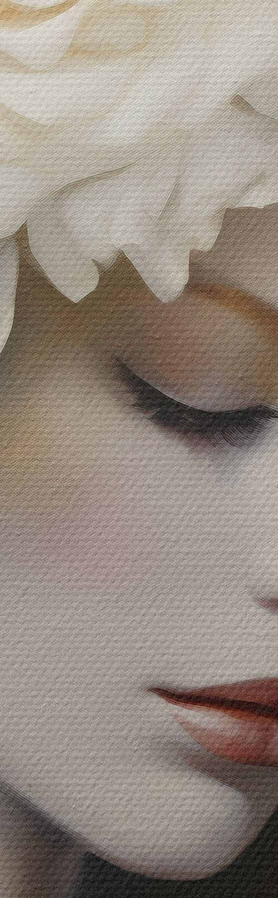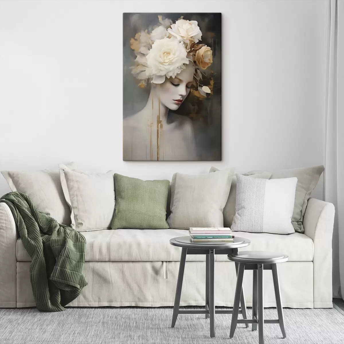 Wandbilder Weibliches Porträt mit weißen Blumen Art. s47904