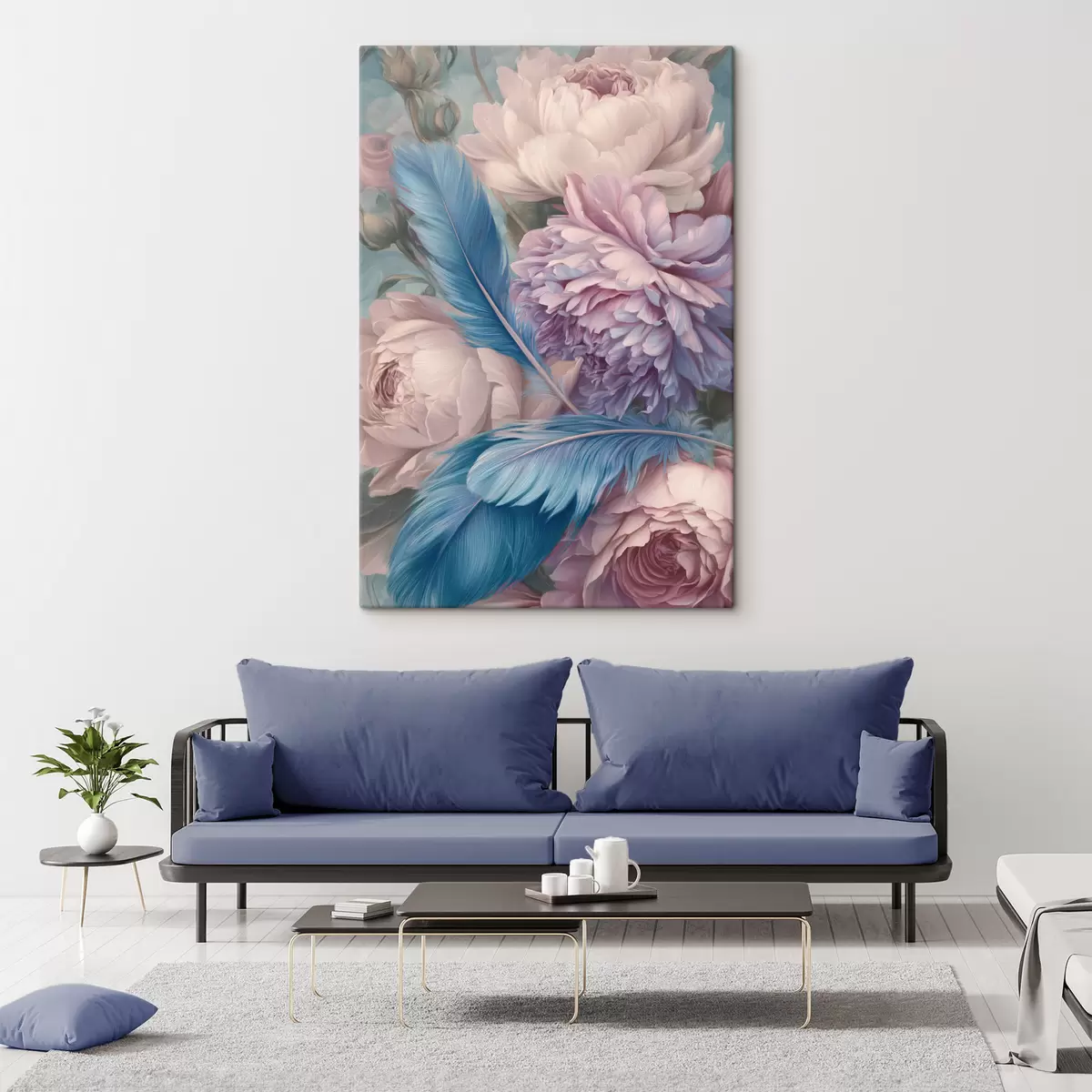 Wandbilder Federn zwischen Pfingstrosen Art. s47939