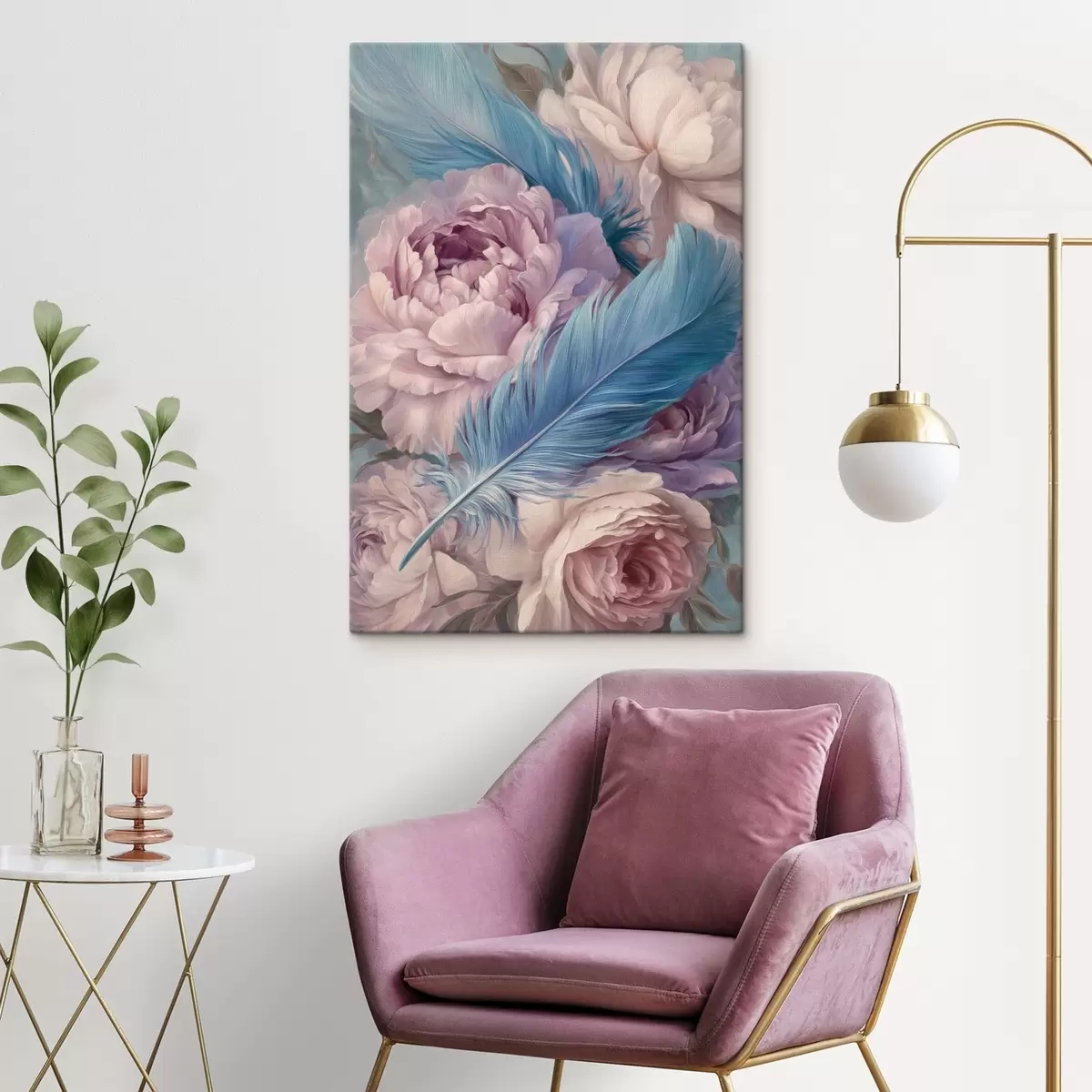 Wandbilder Federn zwischen Pfingstrosen Art. s47940