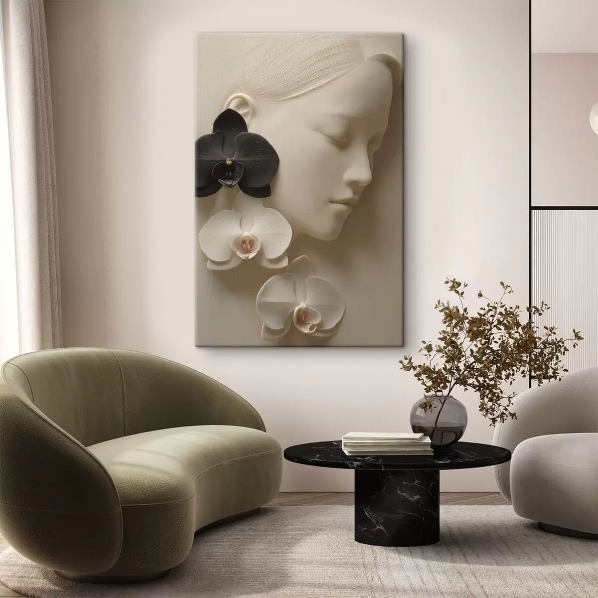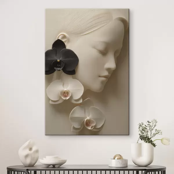 Wandbilder Mädchen mit Orchideen im Flachreliefstil Art. s47941