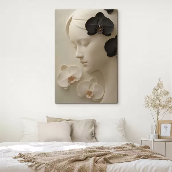 Wandbilder Mädchen mit Orchideen im Flachreliefstil s47942