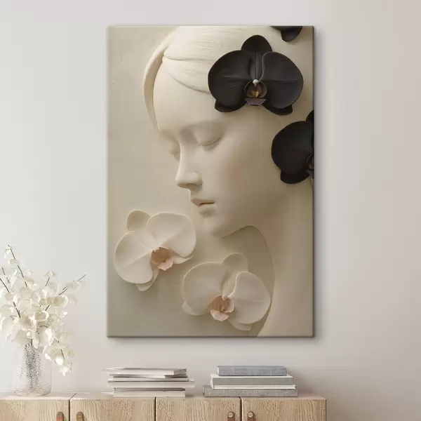 Wandbilder Mädchen mit Orchideen im Flachreliefstil Art. s47942