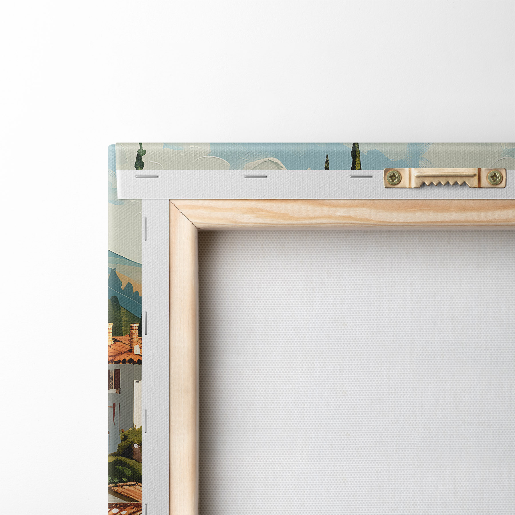 Um die Leinwand auf Keilrahmen zu spannen, ohne das Bild zu beschädigen, verwenden wir ein gespiegeltes Bild.