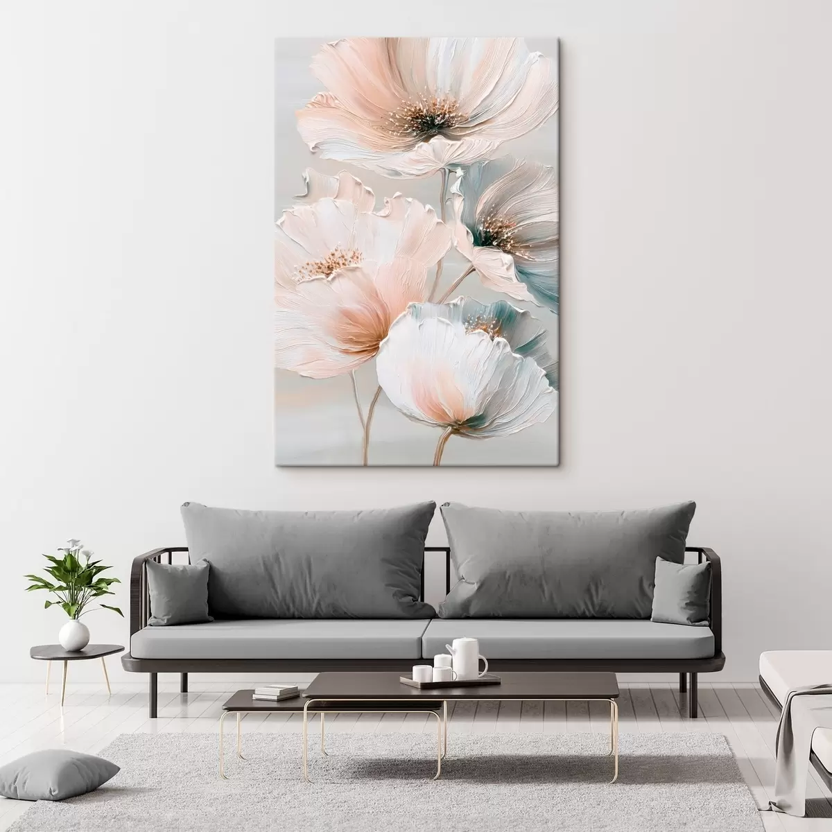 Wandbilder Blumenkomposition mit strukturierten Pinselstrichen in einer beige-rosa Farbpalette s47961