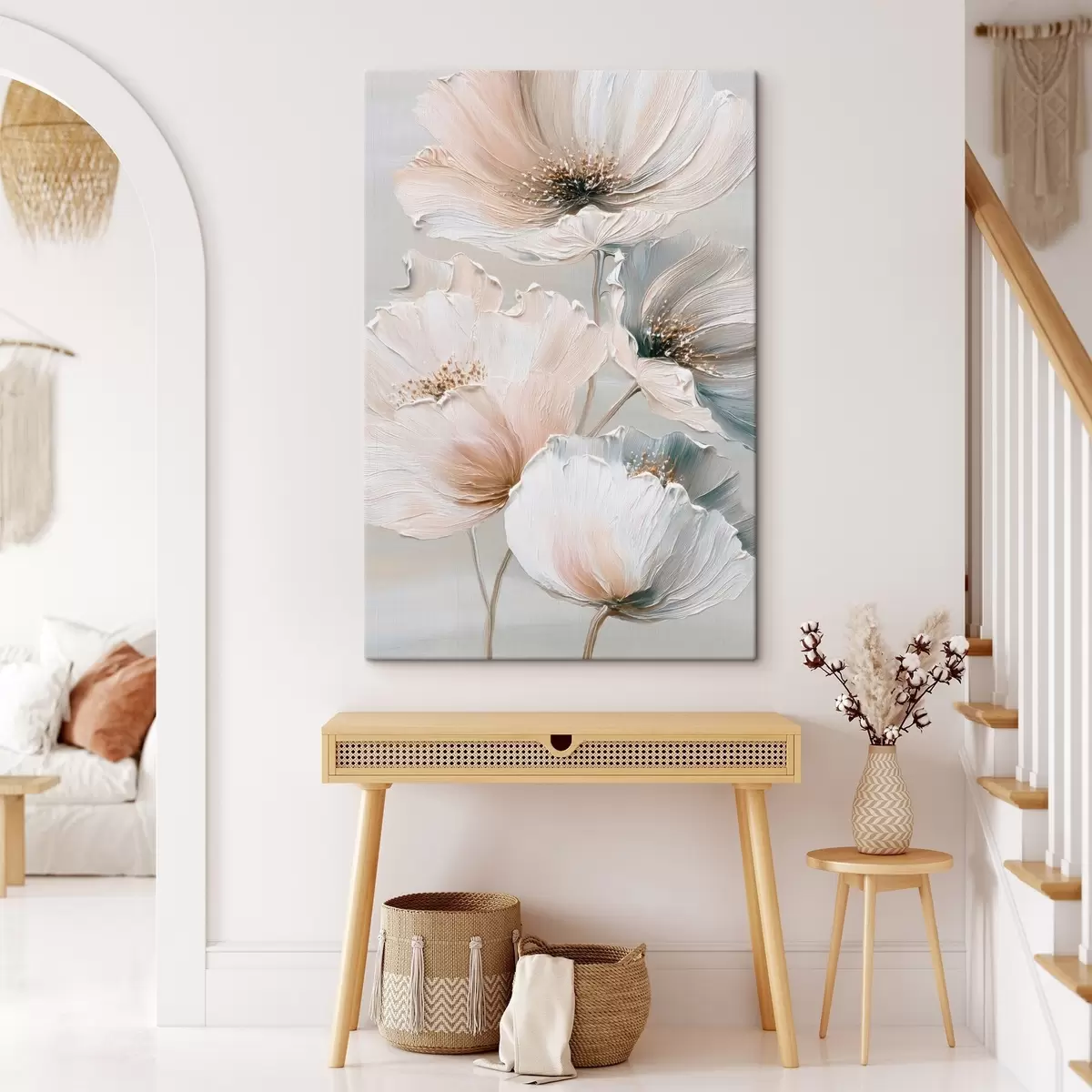 Wandbilder Blumenkomposition mit strukturierten Pinselstrichen in einer beige-rosa Farbpalette Art. s47961