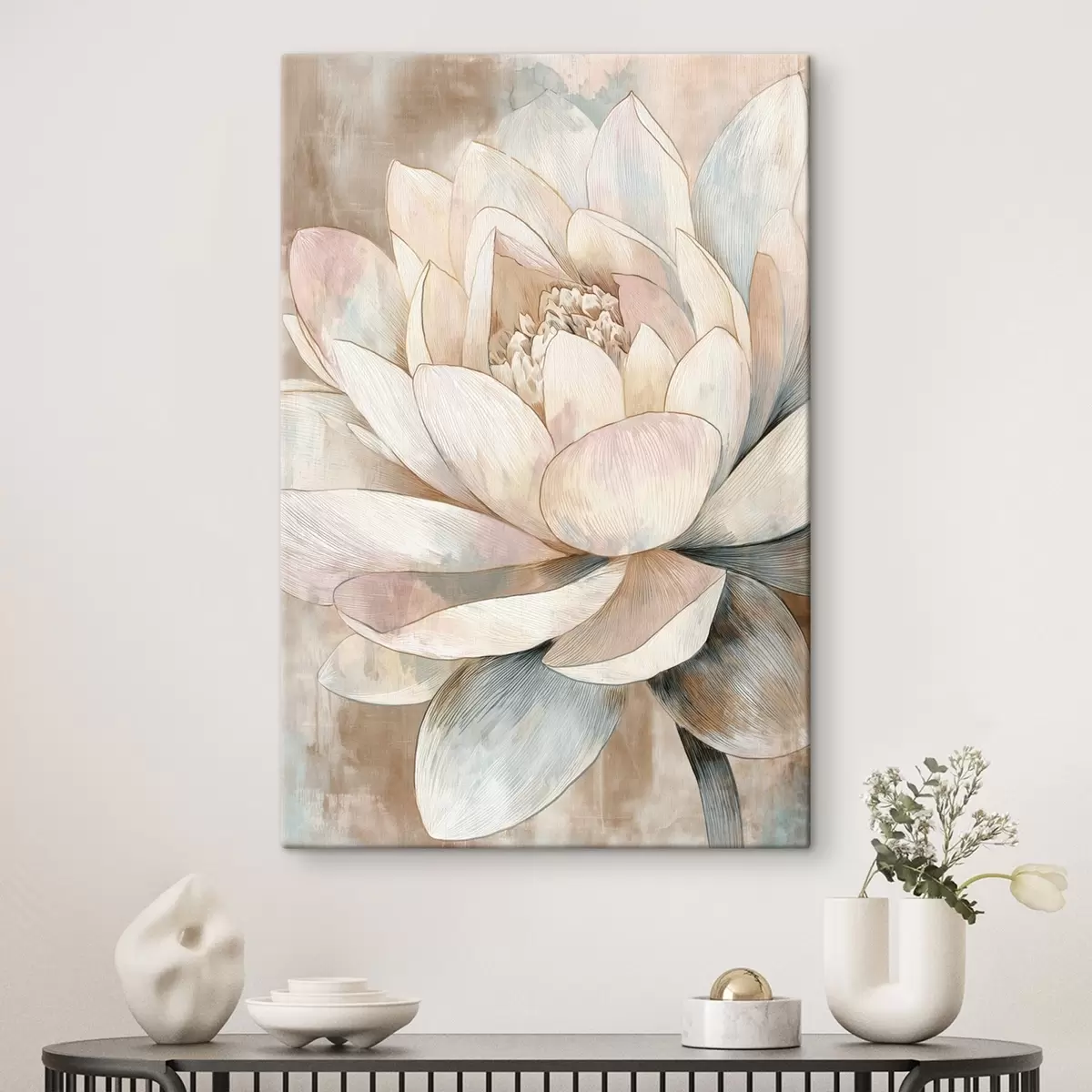 Wandbilder Große Lotusblume in Pastelltönen im minimalistischen Stil Art. s47973