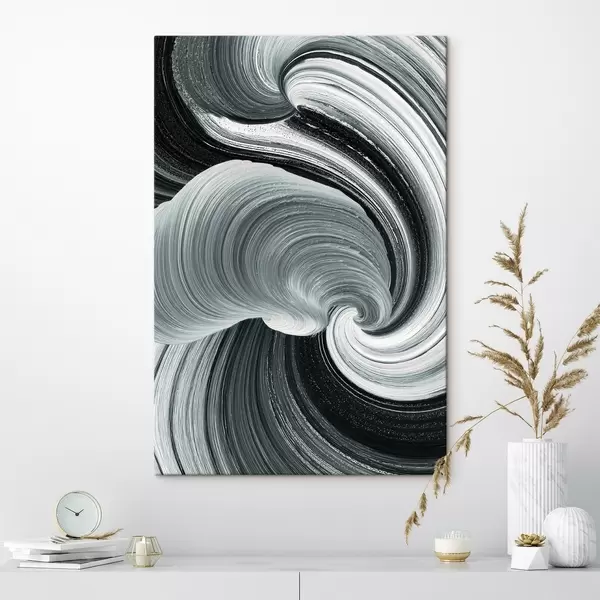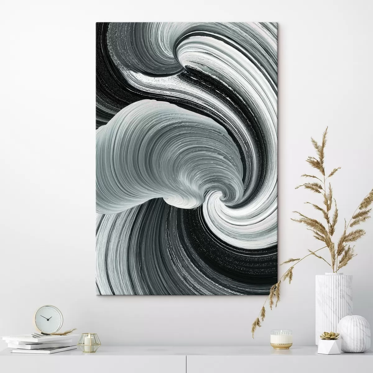 Wandbilder Bewegungsenergie: Schwarz-Weiß-Abstraktes im Stil eines Ölgemäldes Art. s47990