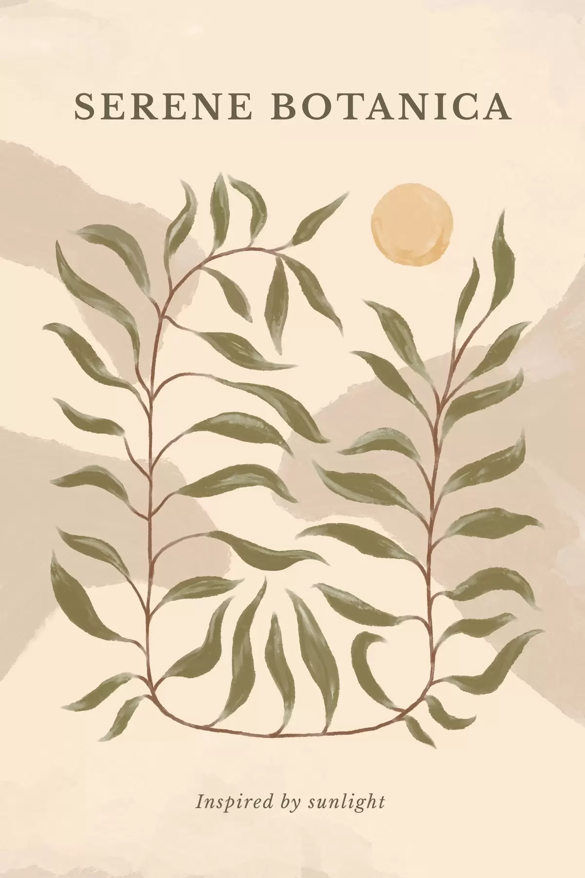 Wandbilder Botanisches Poster mit Serene Botanica-Text s48022