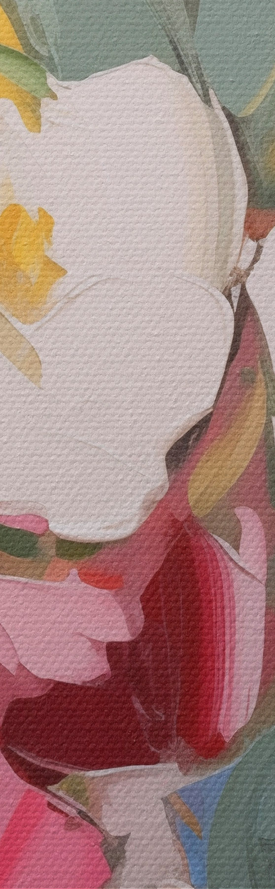 Das feine Fadengeflecht auf dieser Leinwand ähnelt der Oberfläche von professionellen Künstlerleinwänden.