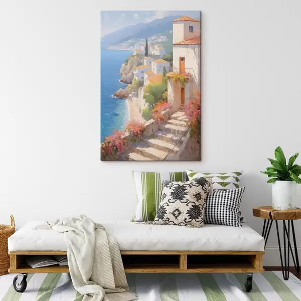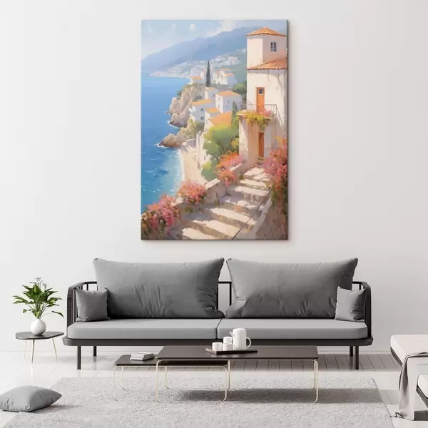 Wandbilder impressionistisches mediterranes Dorf an einer Steilküste s48060