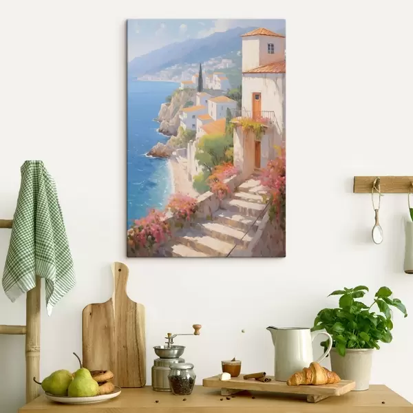 Wandbilder impressionistisches mediterranes Dorf an einer Steilküste Art. s48060
