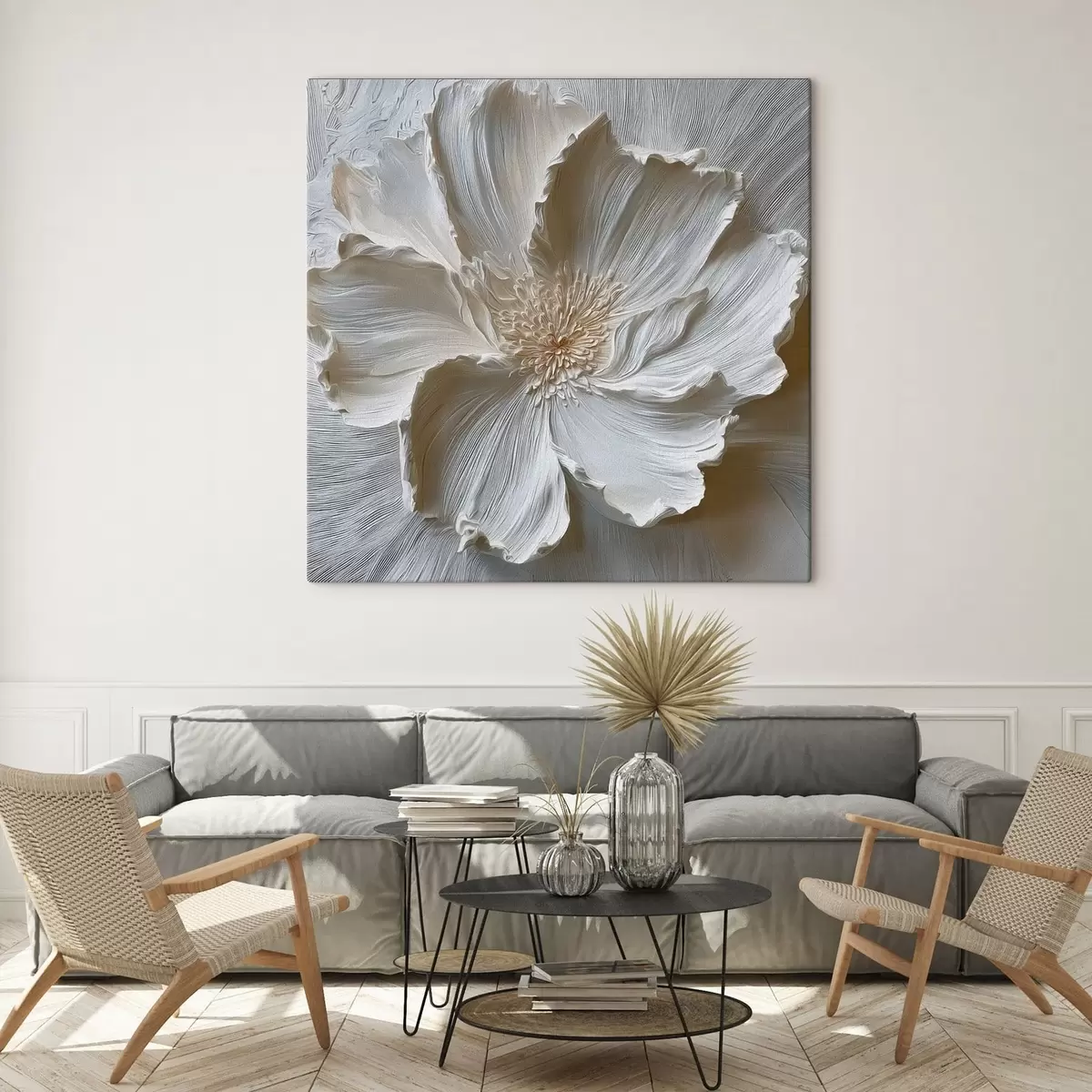 Wandbilder Weiße Gipsrelief-Blumenskulptur s48064