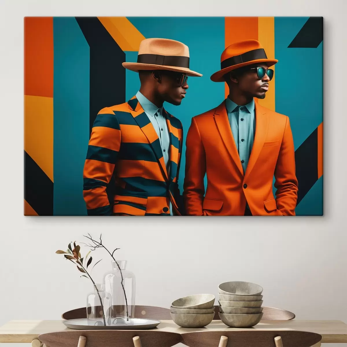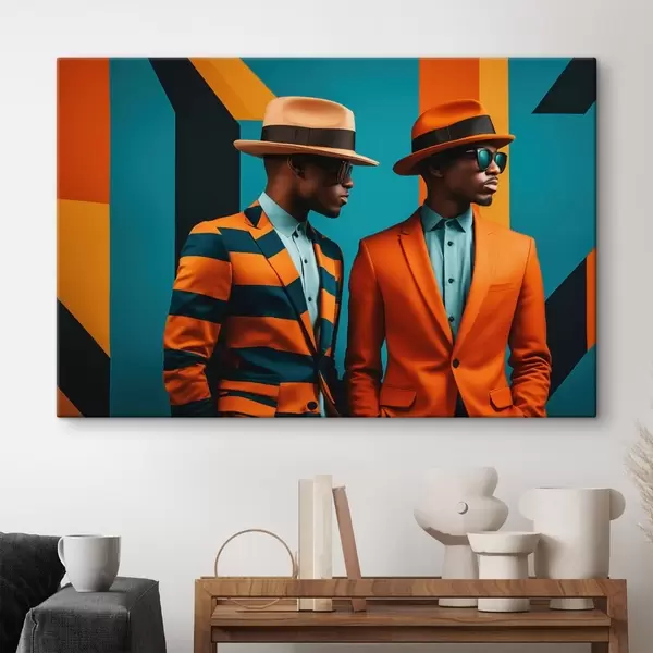 Wandbilder Zwei Männer in bunten Anzügen und Hüten Art. s48091