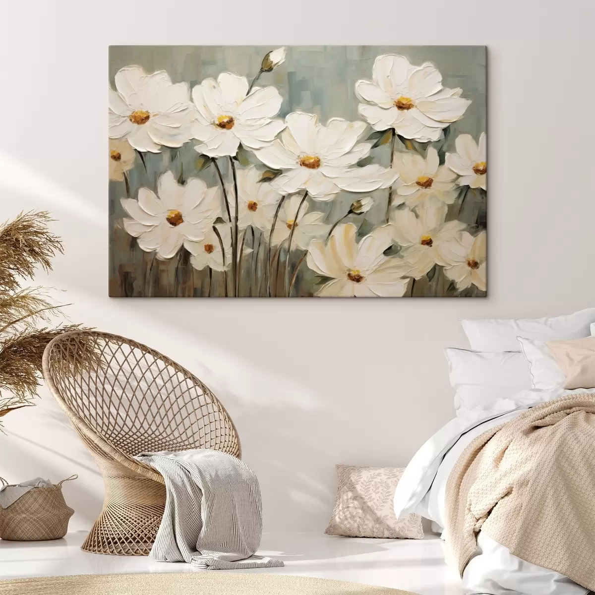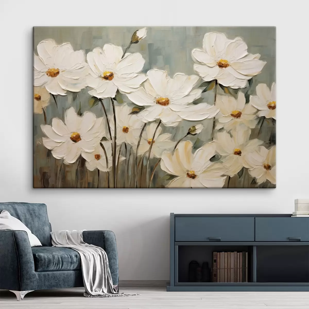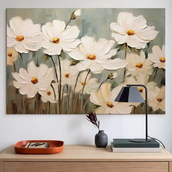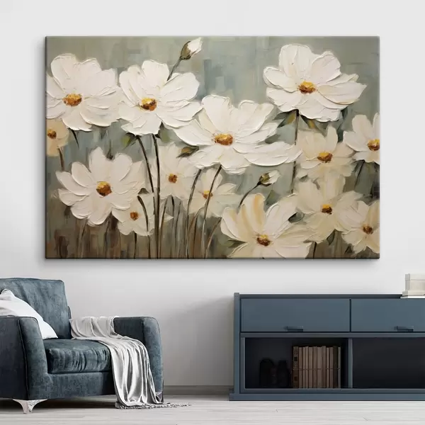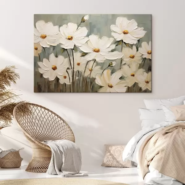 Wandbilder Weiße Blumen auf strukturiertem Hintergrund, Pinselstriche Art. s48094