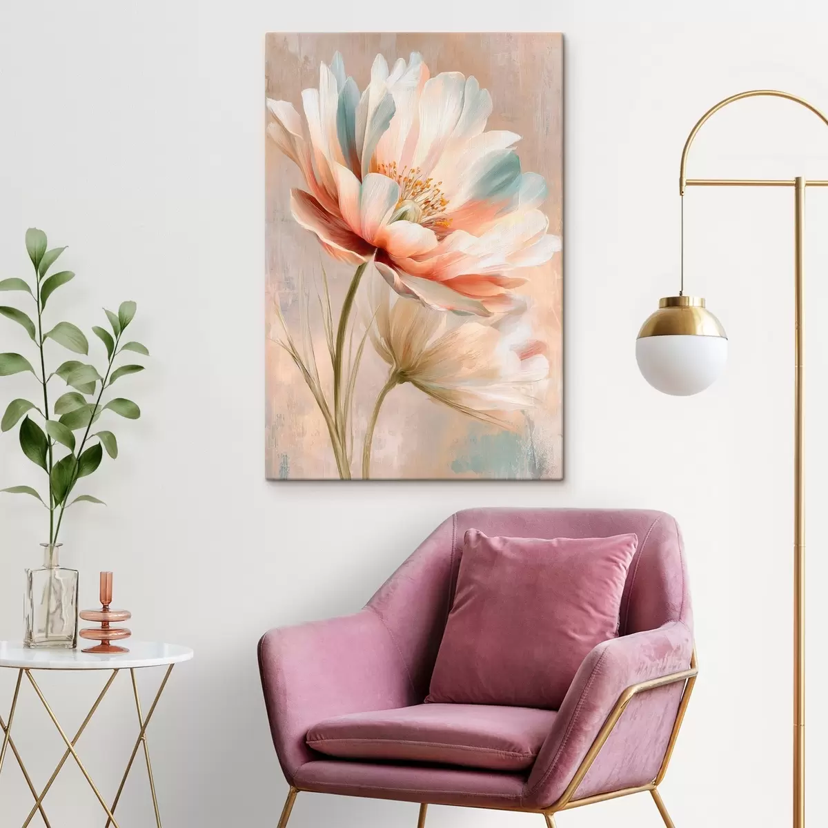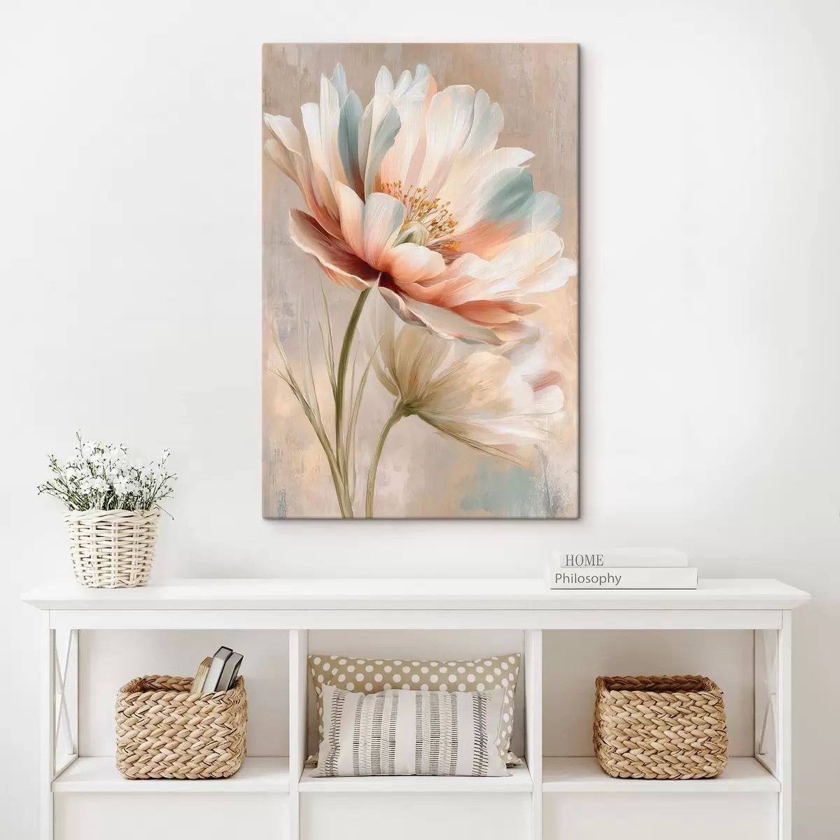 Wandbilder Zarte Pfingstrosen in Beige- und Korallentönen im Ölgemälde-Stil Art. s48184