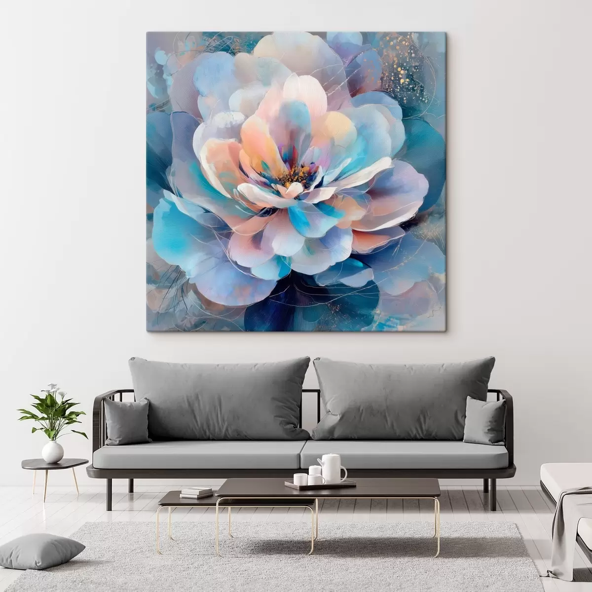 Wandbilder Abstrakte Blume in Rosa- und Blautönen im zeitgenössischen Malstil Art. s48185