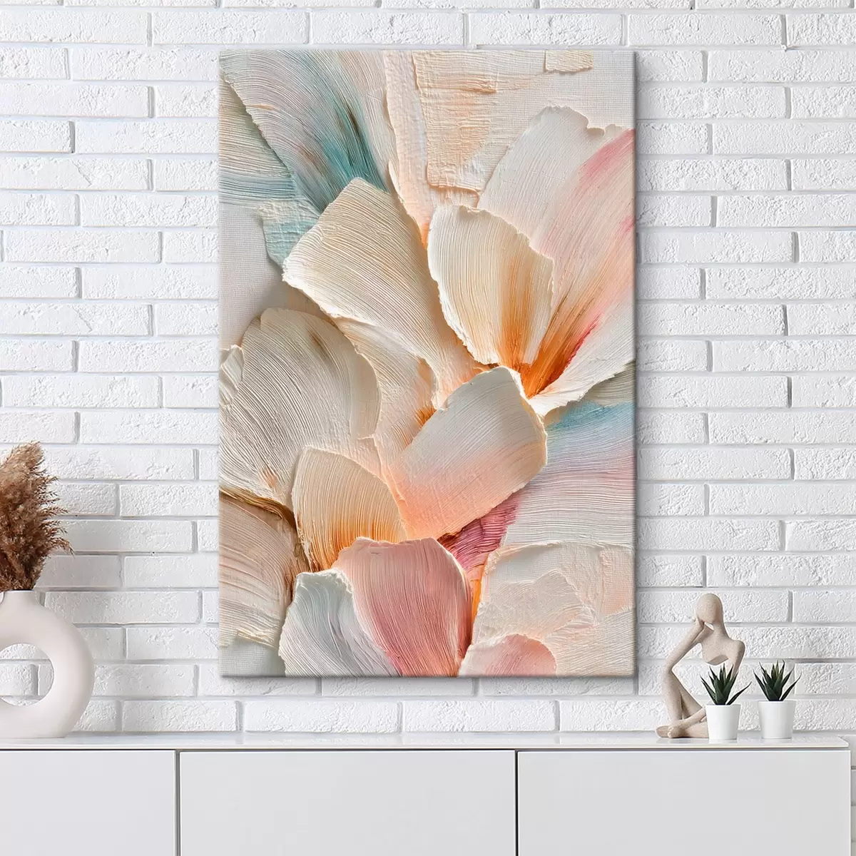 Wandbilder Abstrakte Blumenkomposition in hellen Farbtönen im Stil eines Ölgemäldes Art. s48204