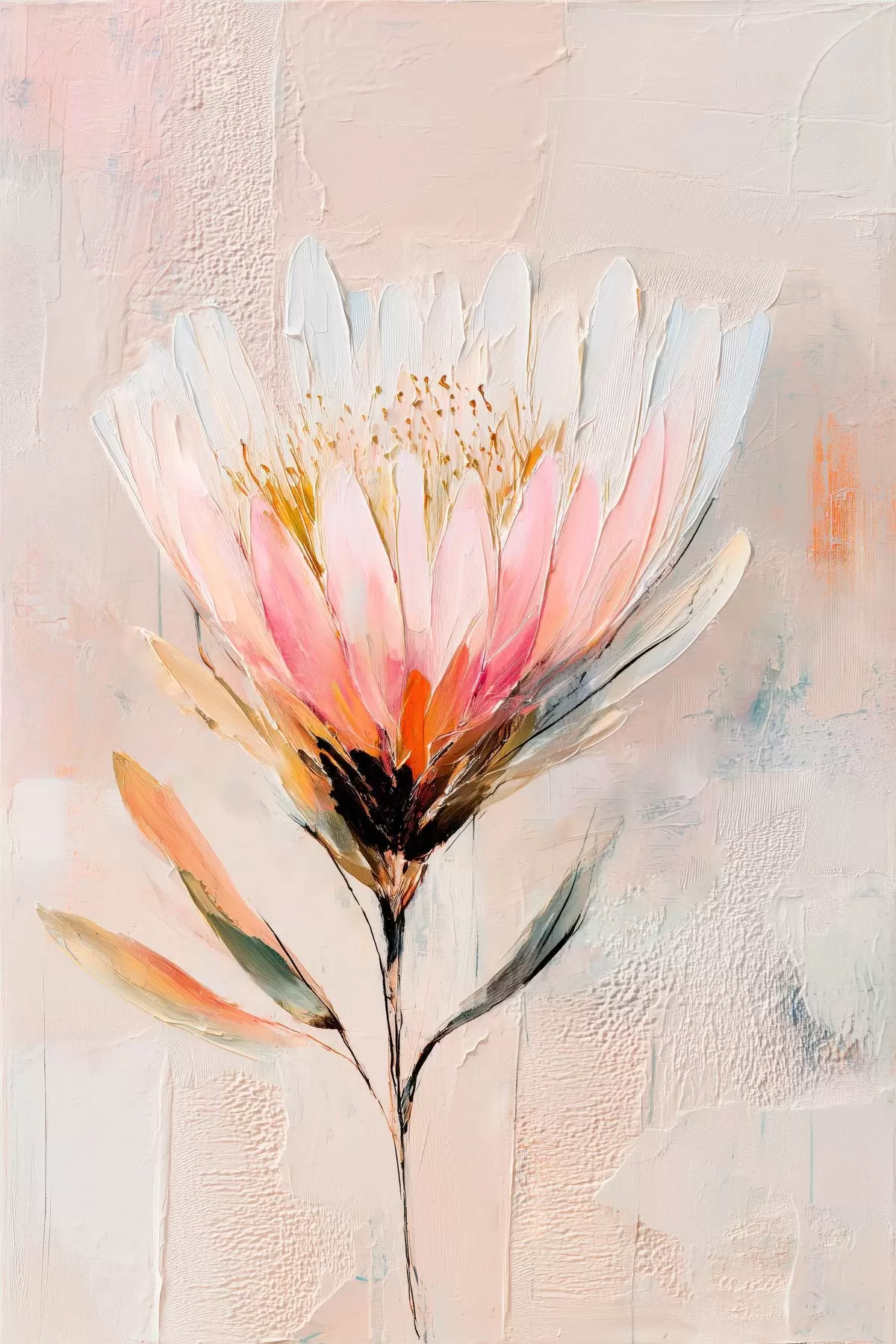 Wandbilder Protea-Blüte in zarten Rosatönen im Ölgemälde-Stil s48205