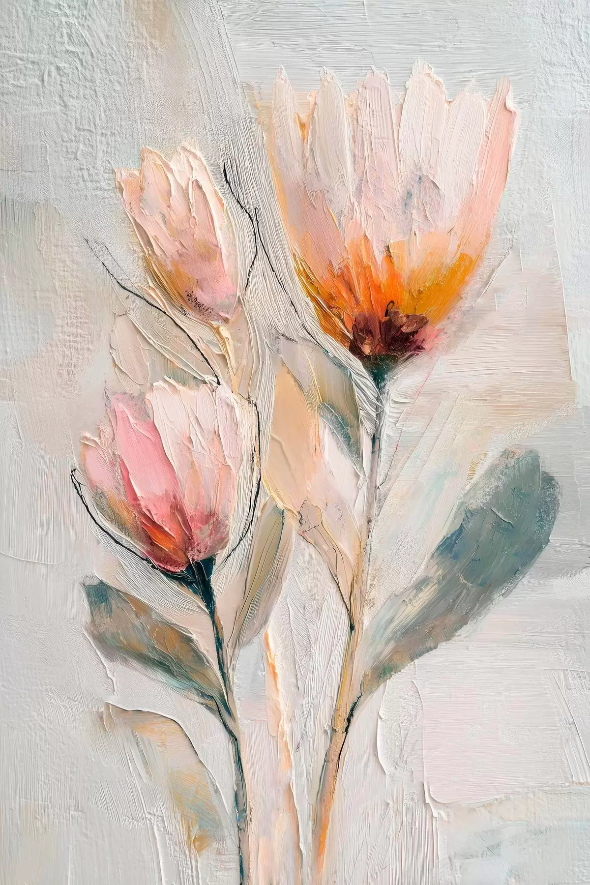 Wandbilder Strauß aus Proteablumen mit kräftigem Pinselstrich-Effekt s48206