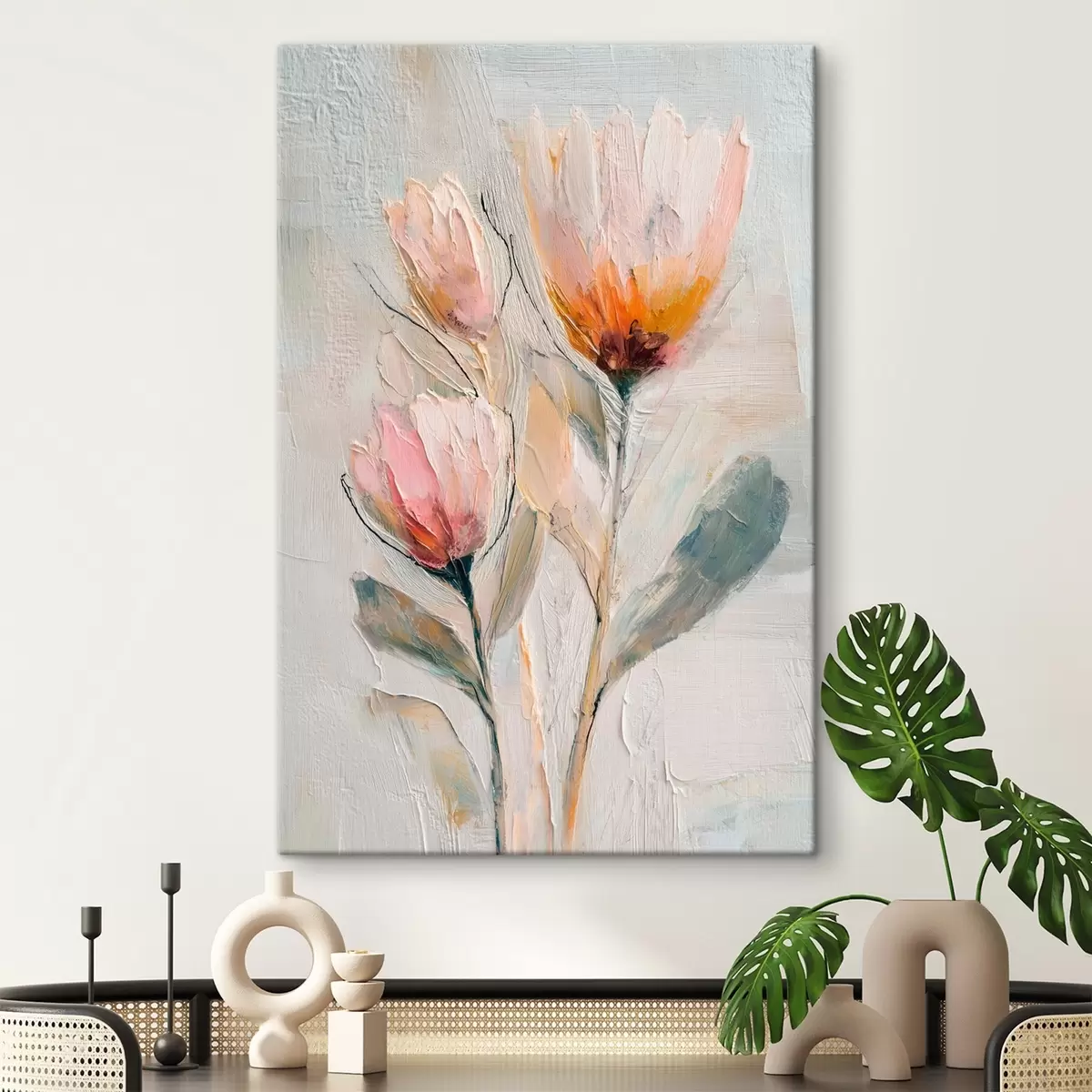 Wandbilder Strauß aus Proteablumen mit kräftigem Pinselstrich-Effekt Art. s48206