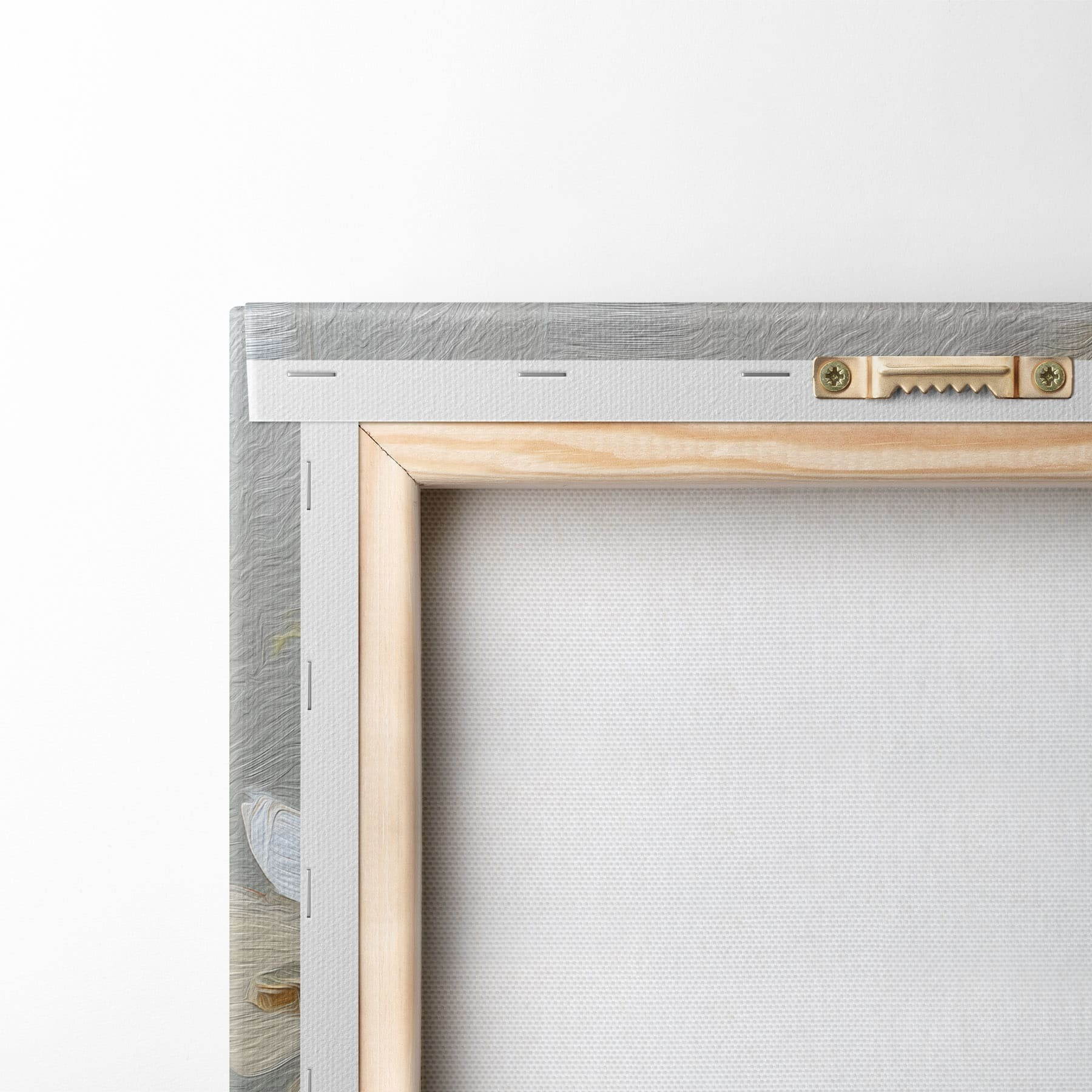 Um die Leinwand auf Keilrahmen zu spannen, ohne das Bild zu beschädigen, verwenden wir ein gespiegeltes Bild.