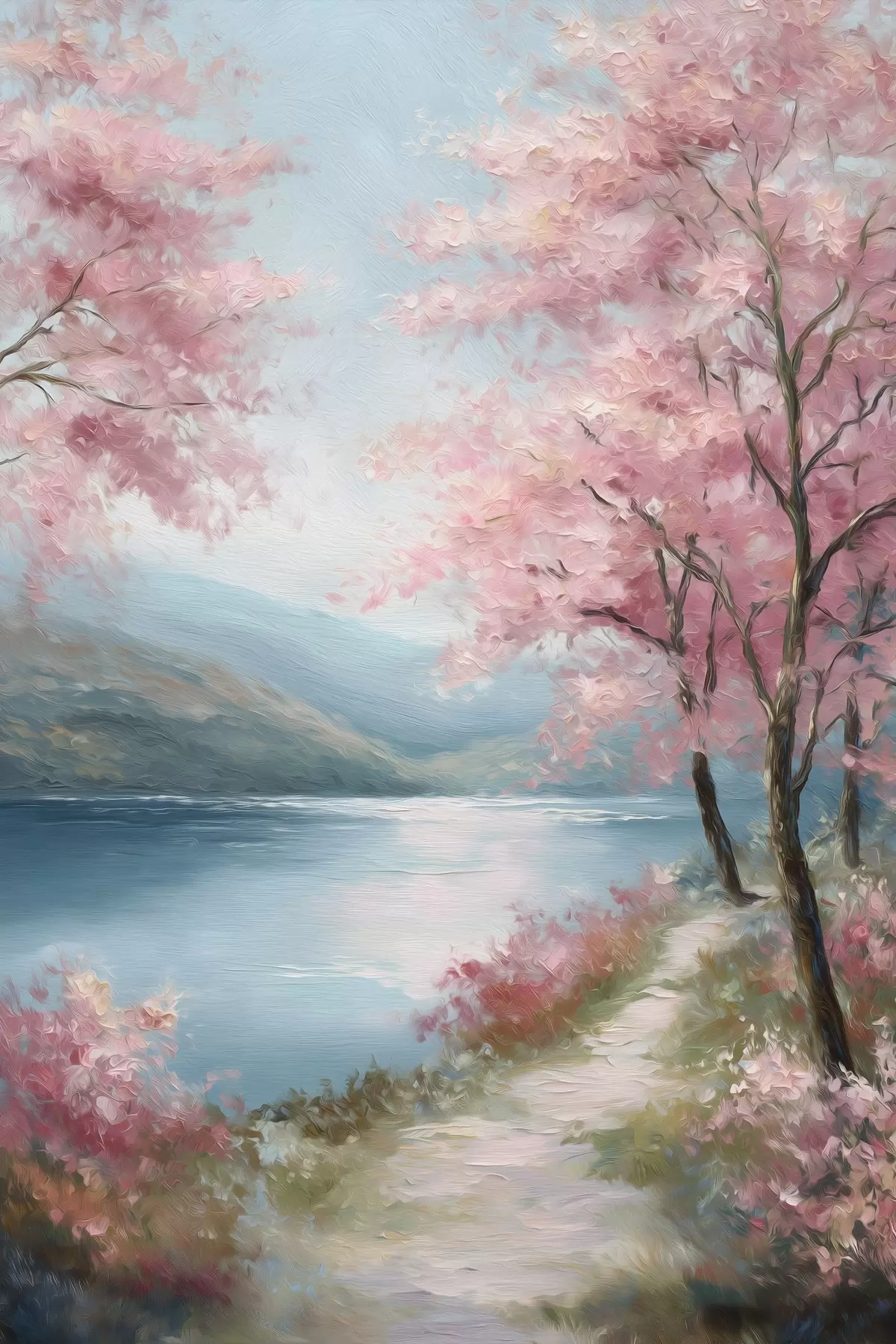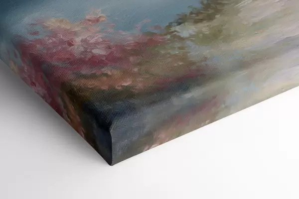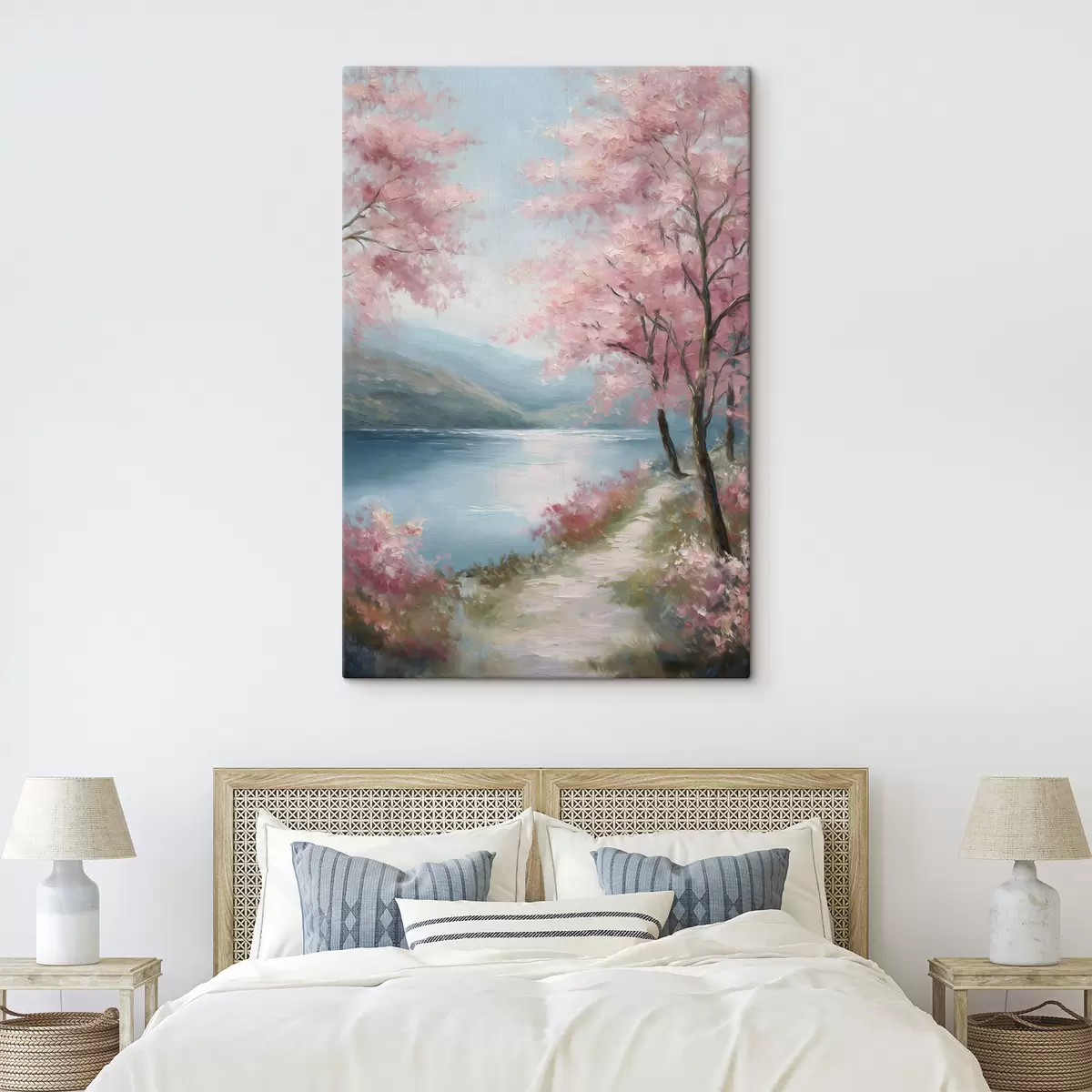 Wandbilder Landschaft mit rosa Bäumen im Ölstil s48289