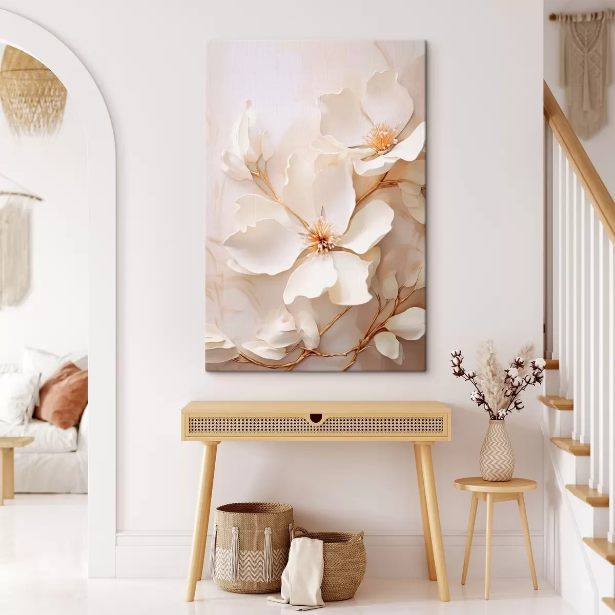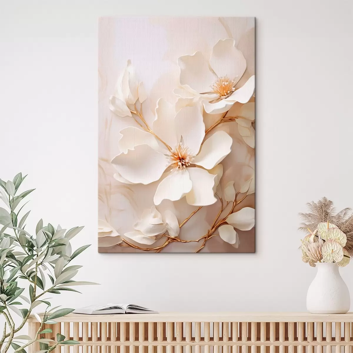 Wandbilder Helle Blumen mit zarten Zweigen vor pastellfarbenem Hintergrund Art. s48348