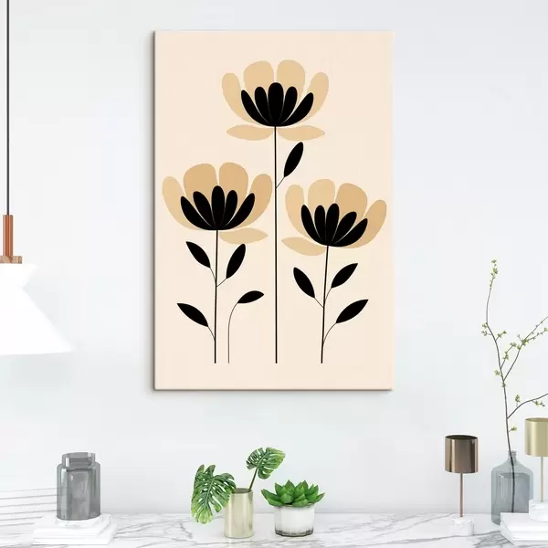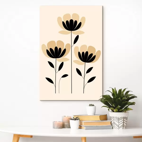 Wandbilder Minimalistische Blumen in Schwarz und Beige s48353