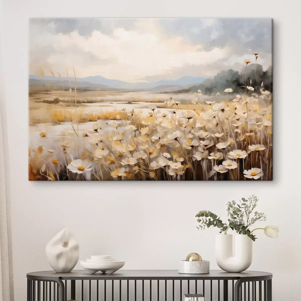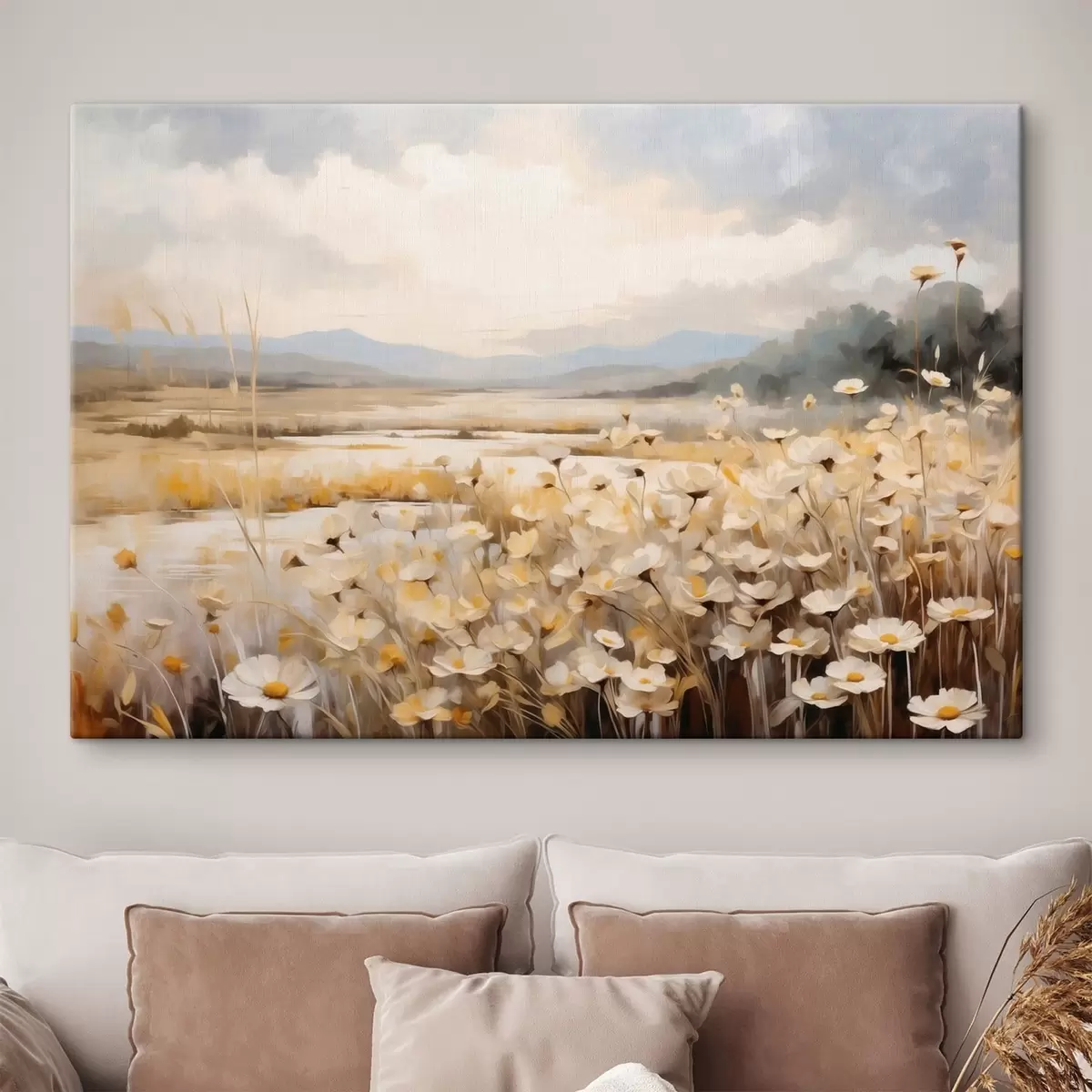Wandbilder Wiesenblumen am Wasser in sanftem, malerischem Stil s48354