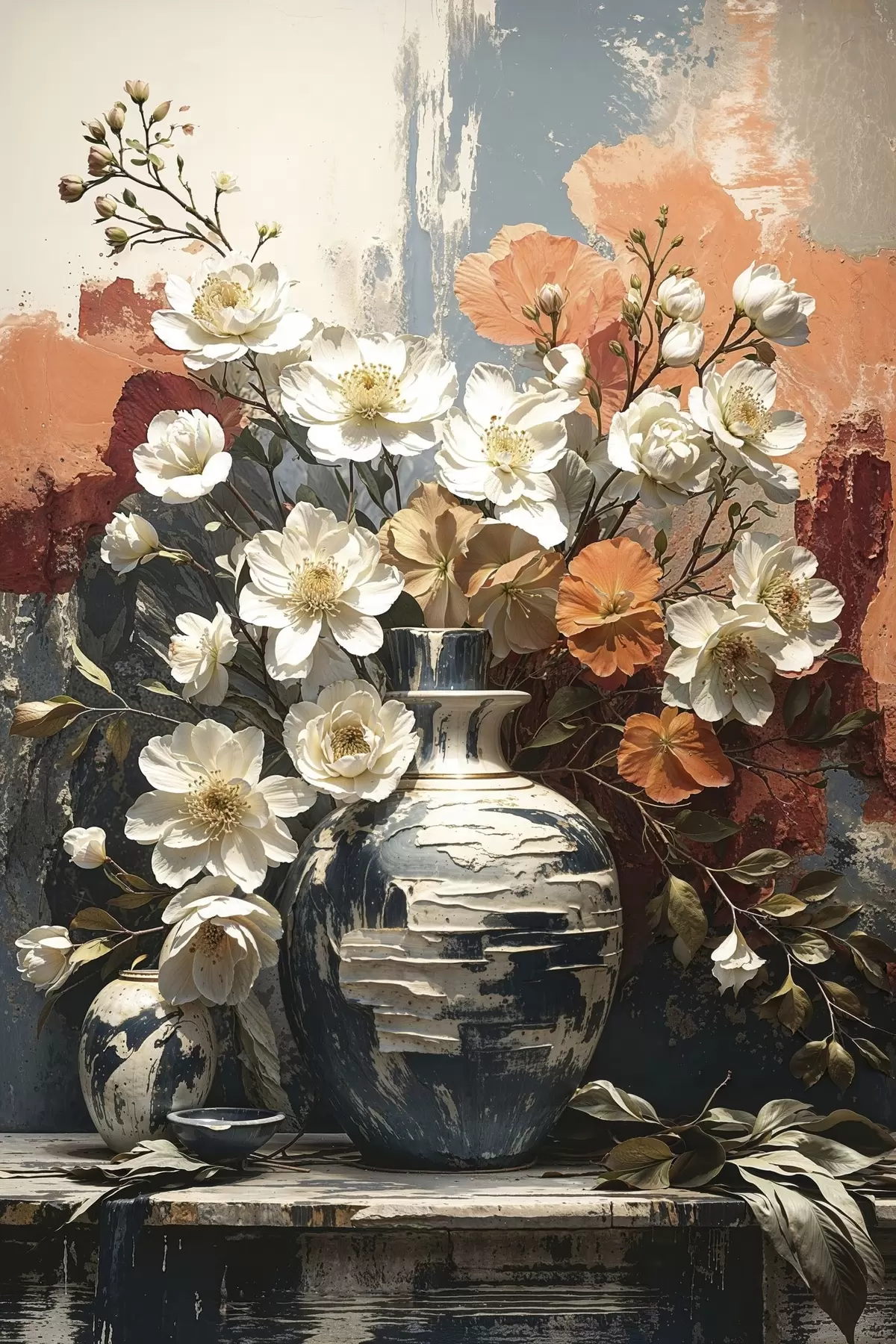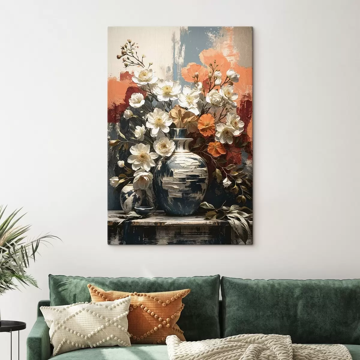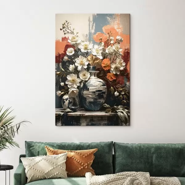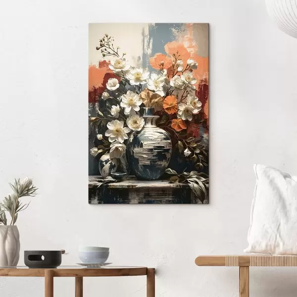Wandbilder Blumen in Vasen vor einer strukturierten Wand Art. s48360