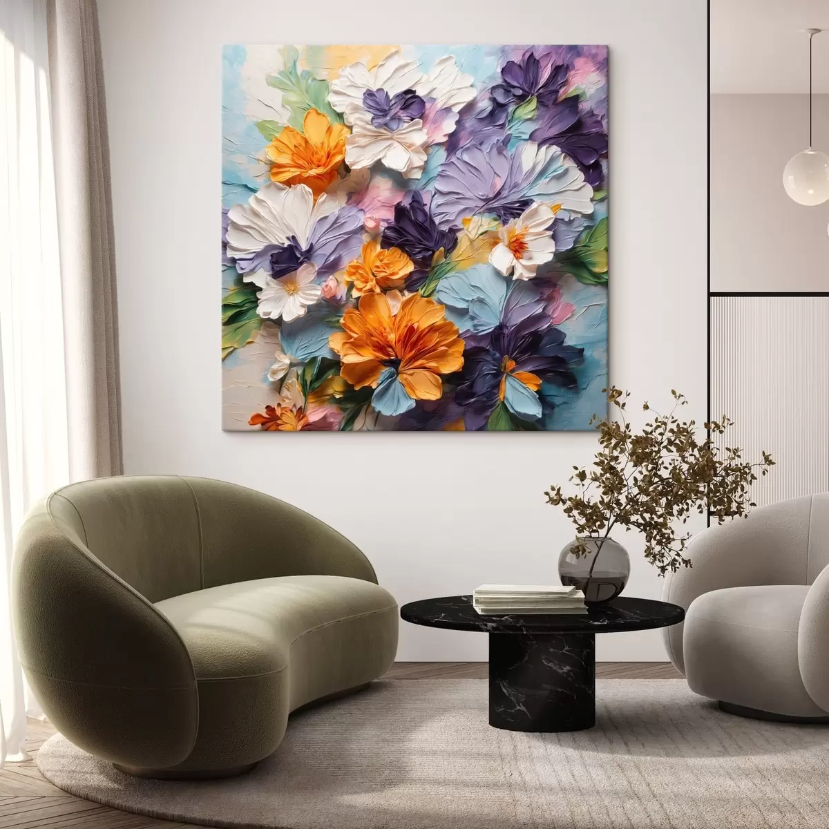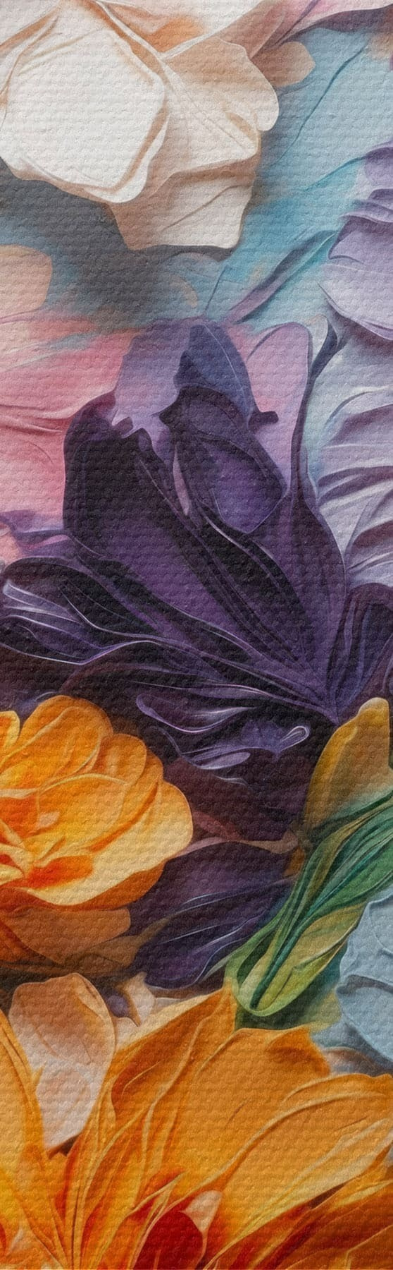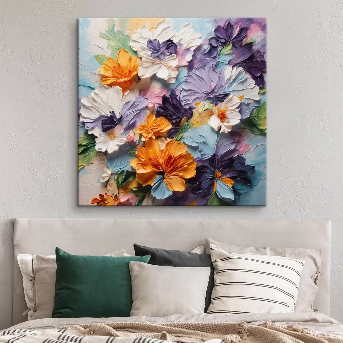 Wandbilder Farbenfrohe, strukturierte Blumen auf pastellfarbenem Hintergrund Art. s48363
