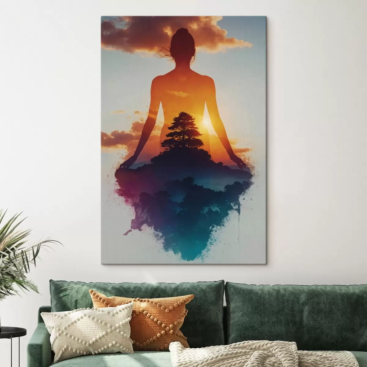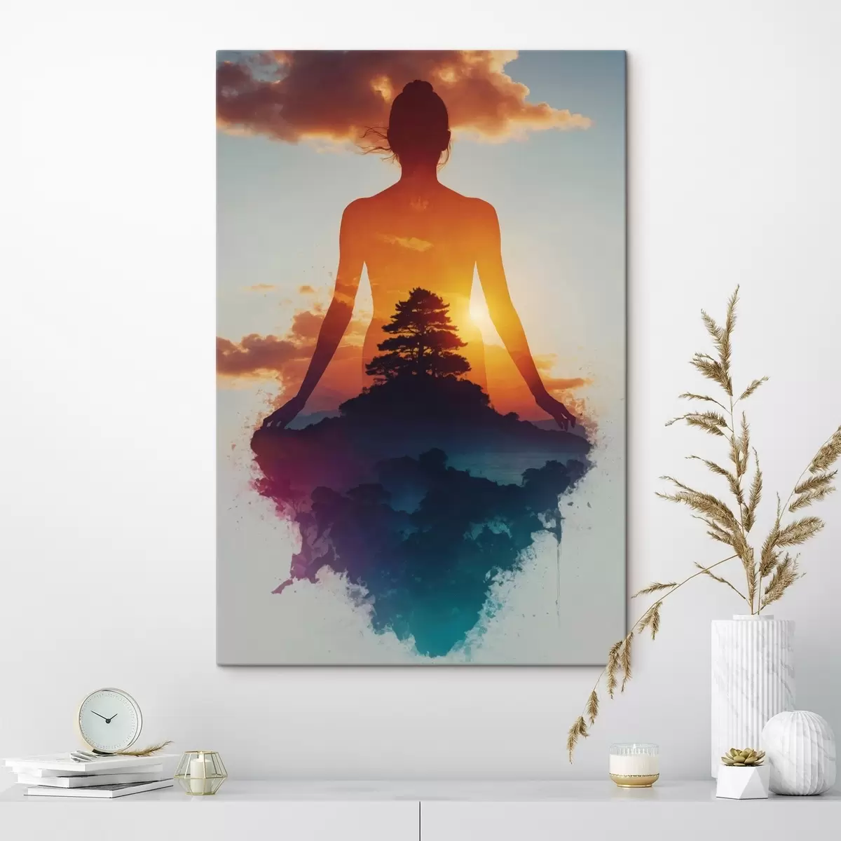 Wandbilder Menschliche Silhouette vor einer Landschaft bei Sonnenuntergang Art. s48364