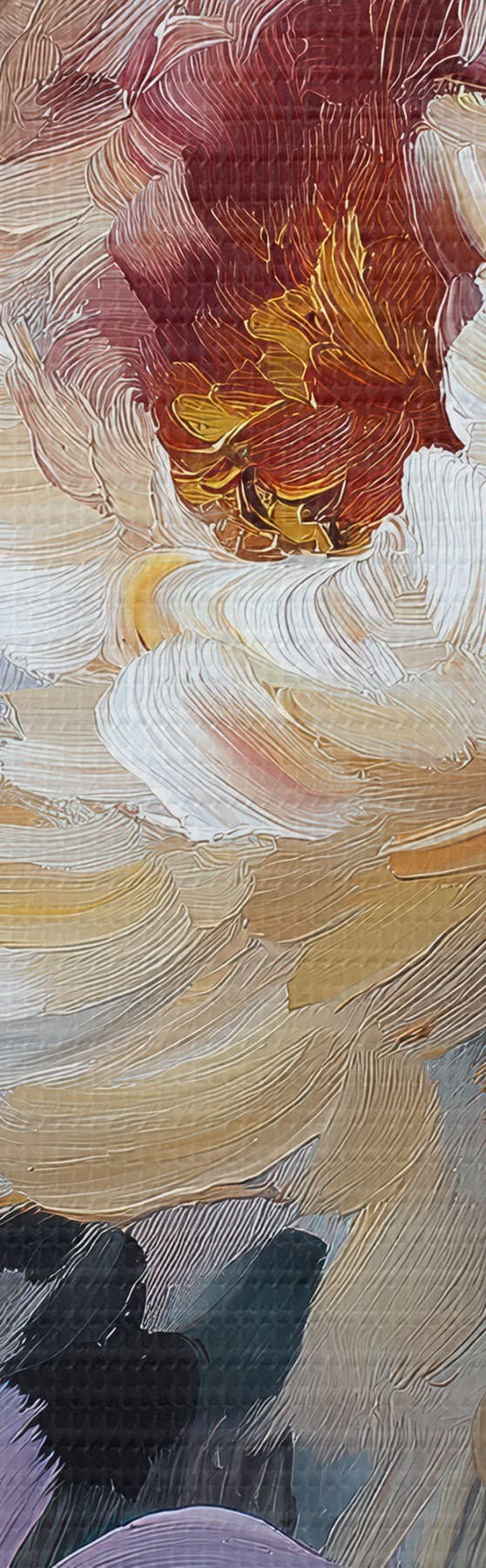 Drei Materialtypen stehen zur Verfügung: Economic Canvas - ein dichtes und haltbares Material für den Digitaldruck, identisch mit Malerleinwand, wasserfeste Oberfläche, realistische Wiedergabe von Details, mittelkörniges Material. Premium Canvas - die Textur ähnelt der einer Malerleinwand (verwobene kleine Fäden). Weiche, detaillierte Wiedergabe des Bildes auf einer matten Oberfläche. Eco-Premium - hochwertiges Gewebe aus 100% Baumwolle. Dank der natürlichen Baumwollfasern ist das Material langlebig und verschleißfest. Hervorragende Farbwiedergabe und Detailtreue.