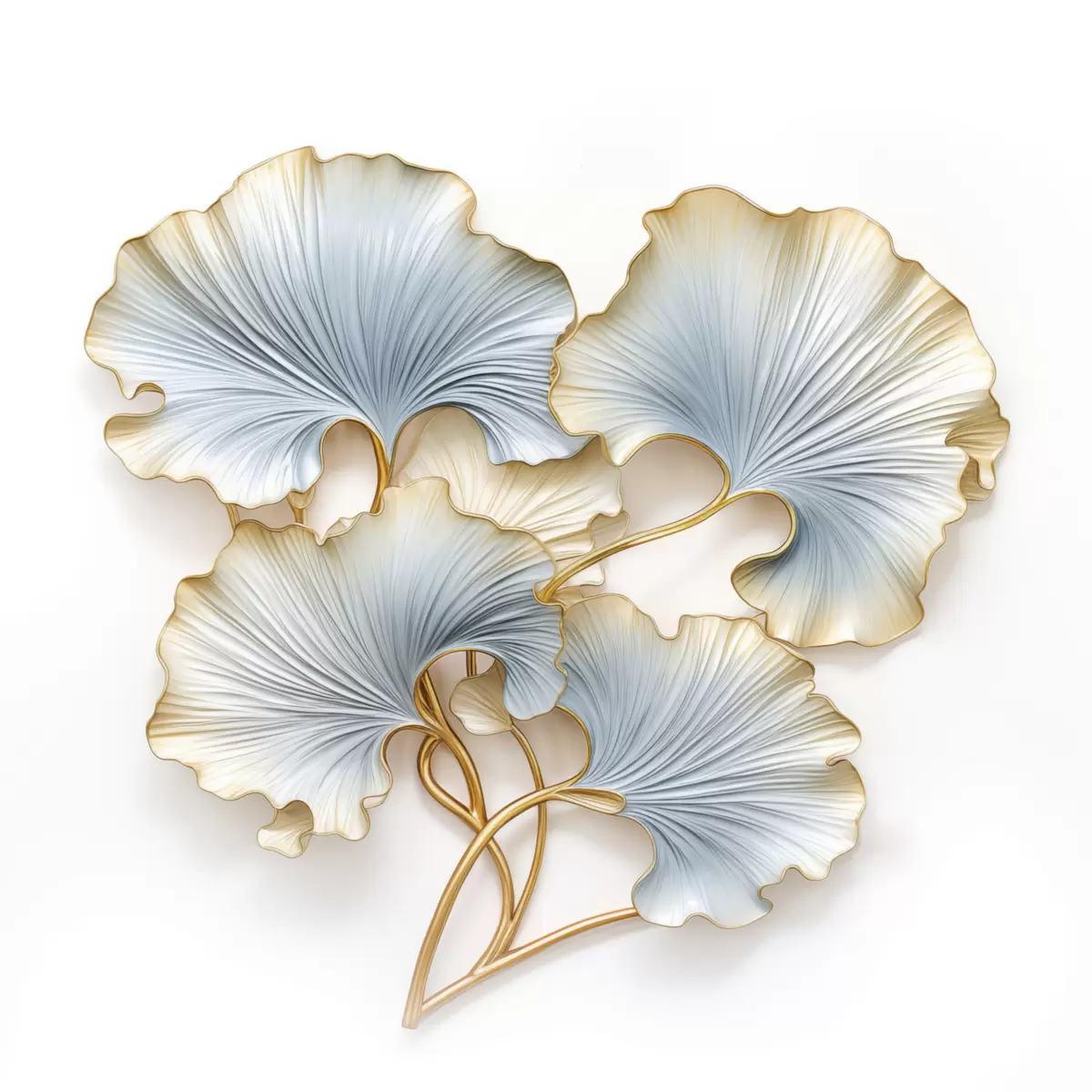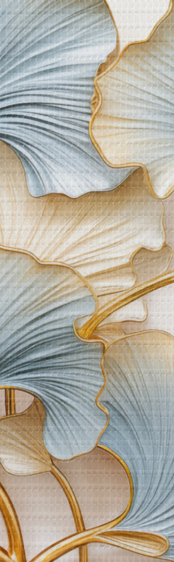 Wandbilder Stilisierte Ginkgoblätter mit blauen und gelben Akzenten s48397