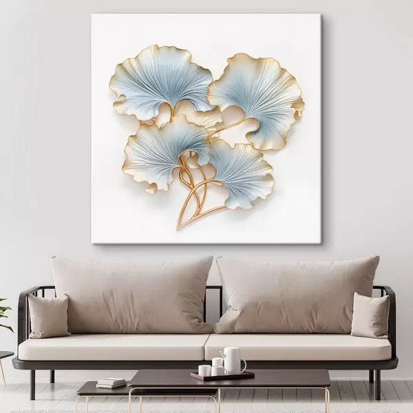 Wandbilder Stilisierte Ginkgoblätter mit blauen und gelben Akzenten Art. s48397