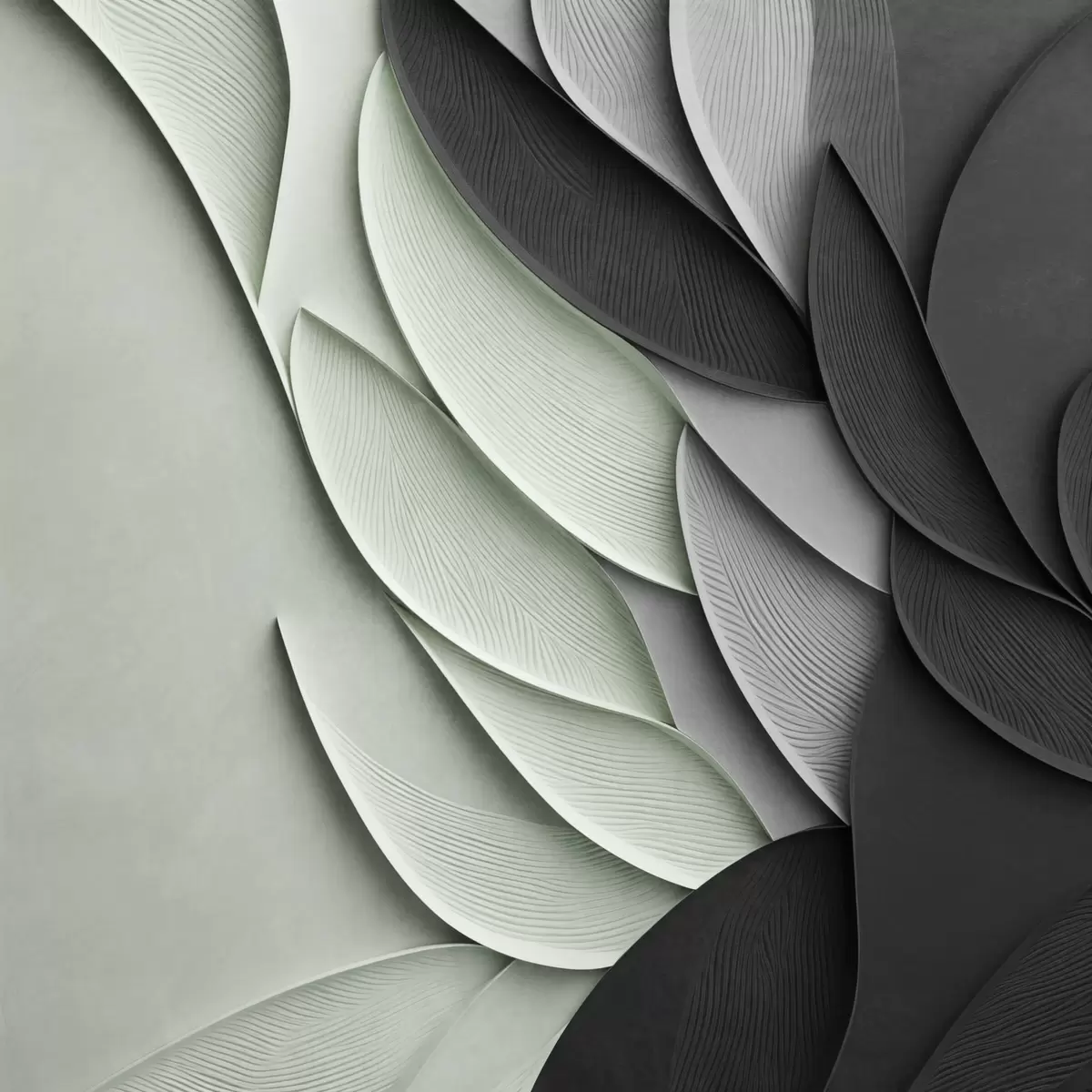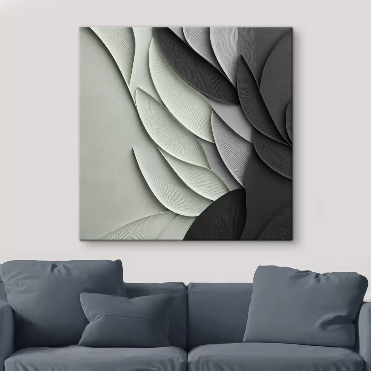 Wandbilder Abstrakte, stilisierte Blätter in Grau-, Weiß- und gedämpften Grüntönen Art. s48412