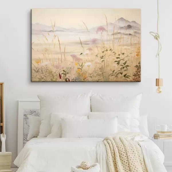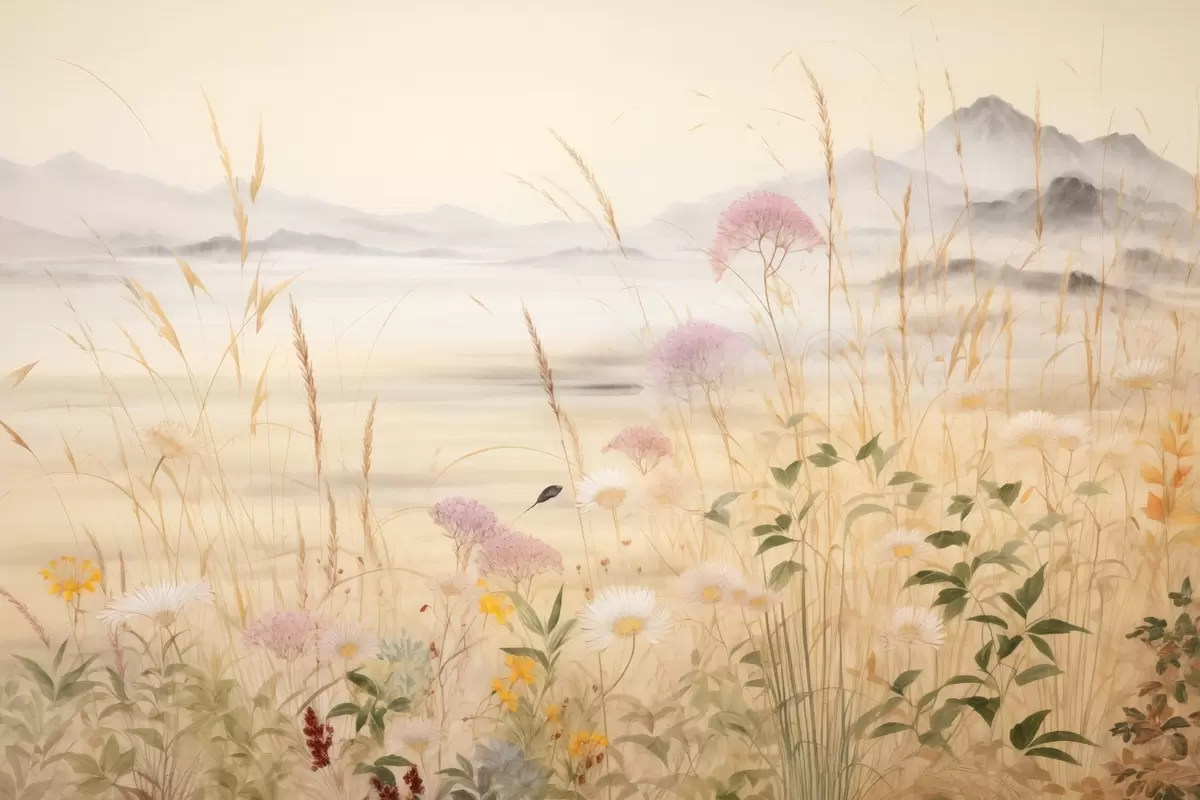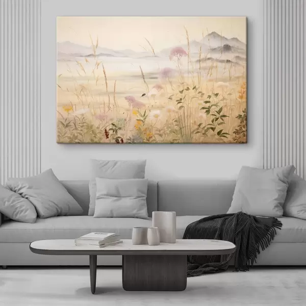 Wandbilder Beiges Blumenfeld, Wiesengräser, zarte Landschaft s48480