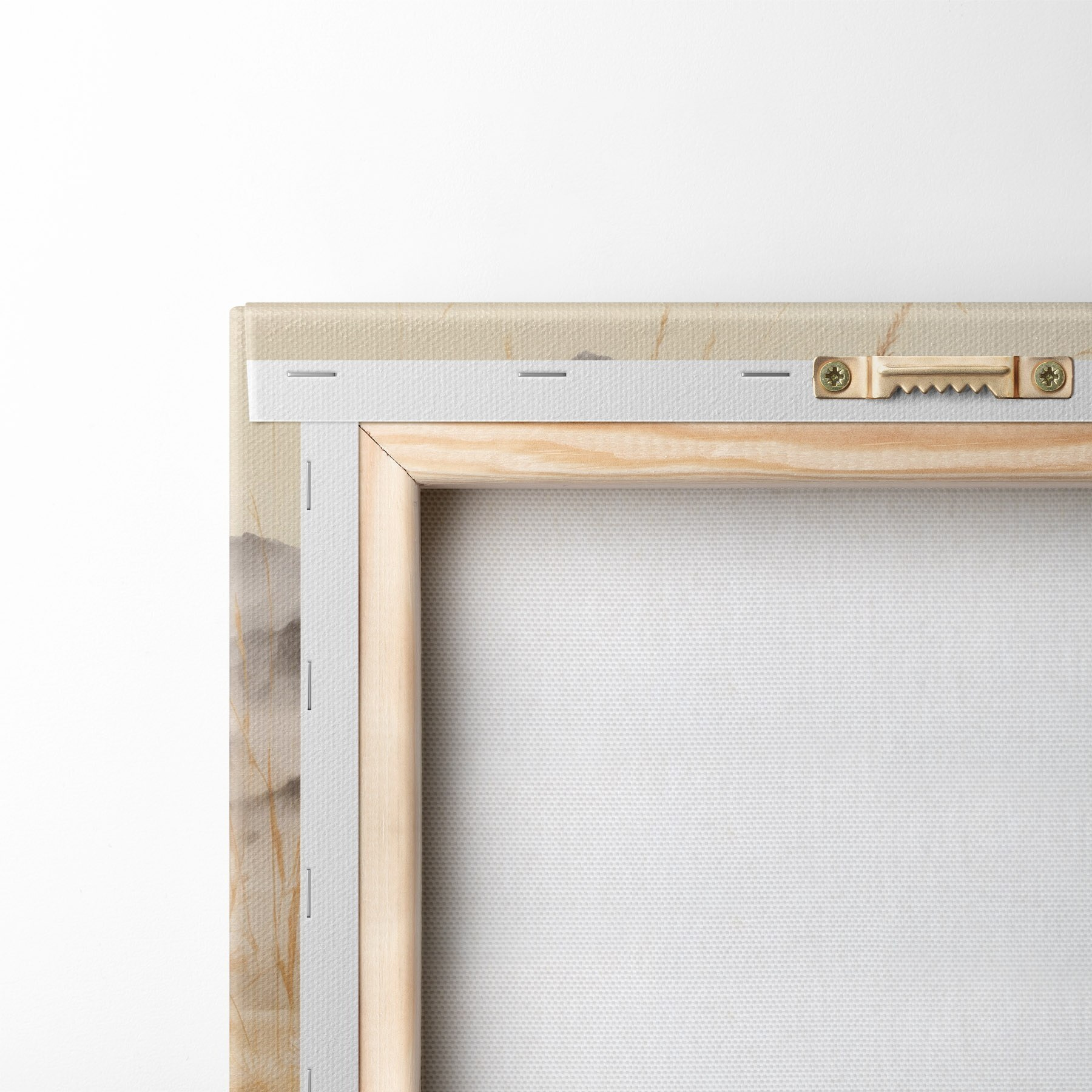 Um die Leinwand auf Keilrahmen zu spannen, ohne das Bild zu beschädigen, verwenden wir ein gespiegeltes Bild.