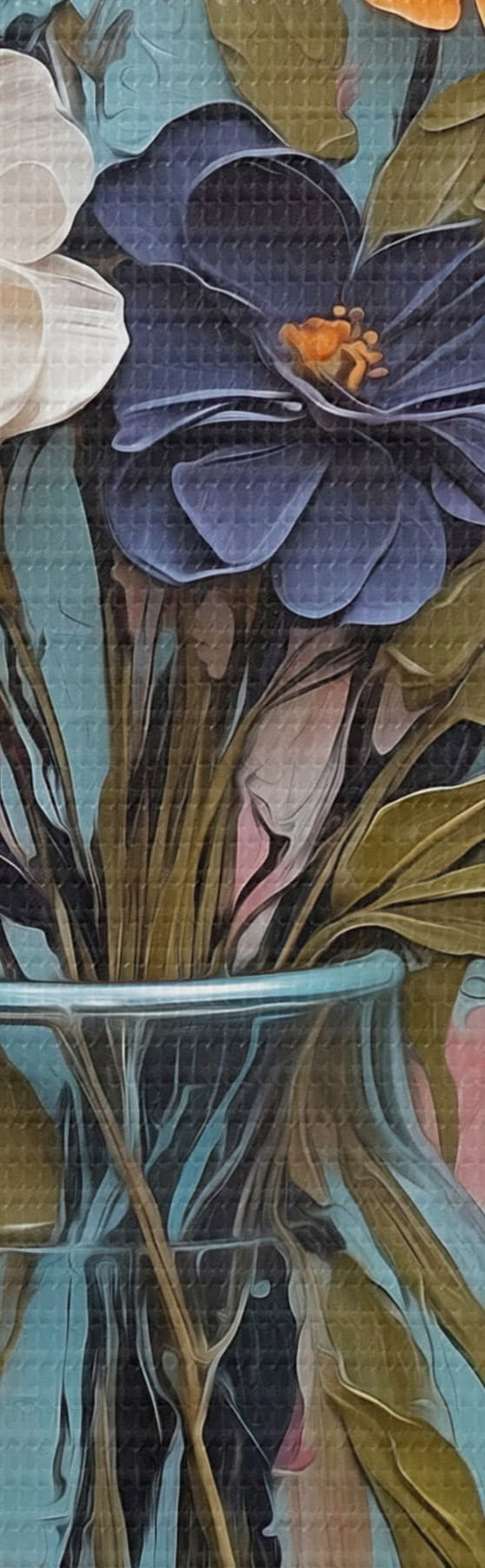 Wandbilder Blumenstrauß in einer Glasvase vor einem bunten Hintergrund s48488
