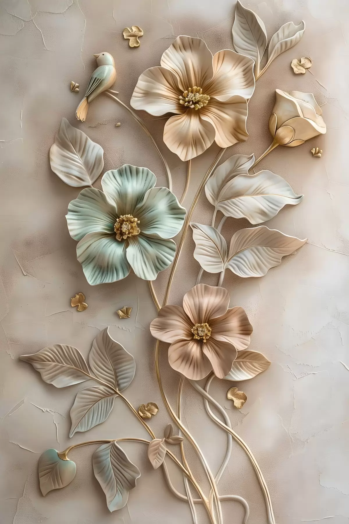 Wandbilder ein zartes, dekoratives Arrangement aus Blumen und Blattwerk Art. s48527