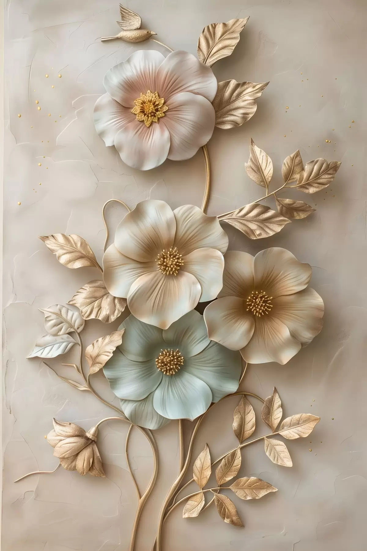 Wandbilder ein zartes, dekoratives Arrangement aus Blumen und Blattwerk Art. s48528
