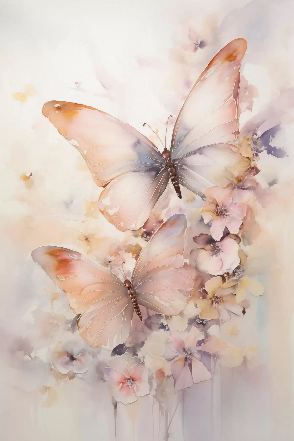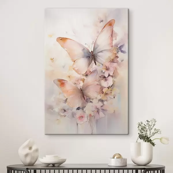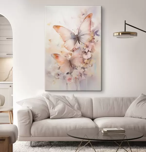 Wandbilder Zarte Blumen mit Schmetterlingen, Pastellfarben Art. s48563
