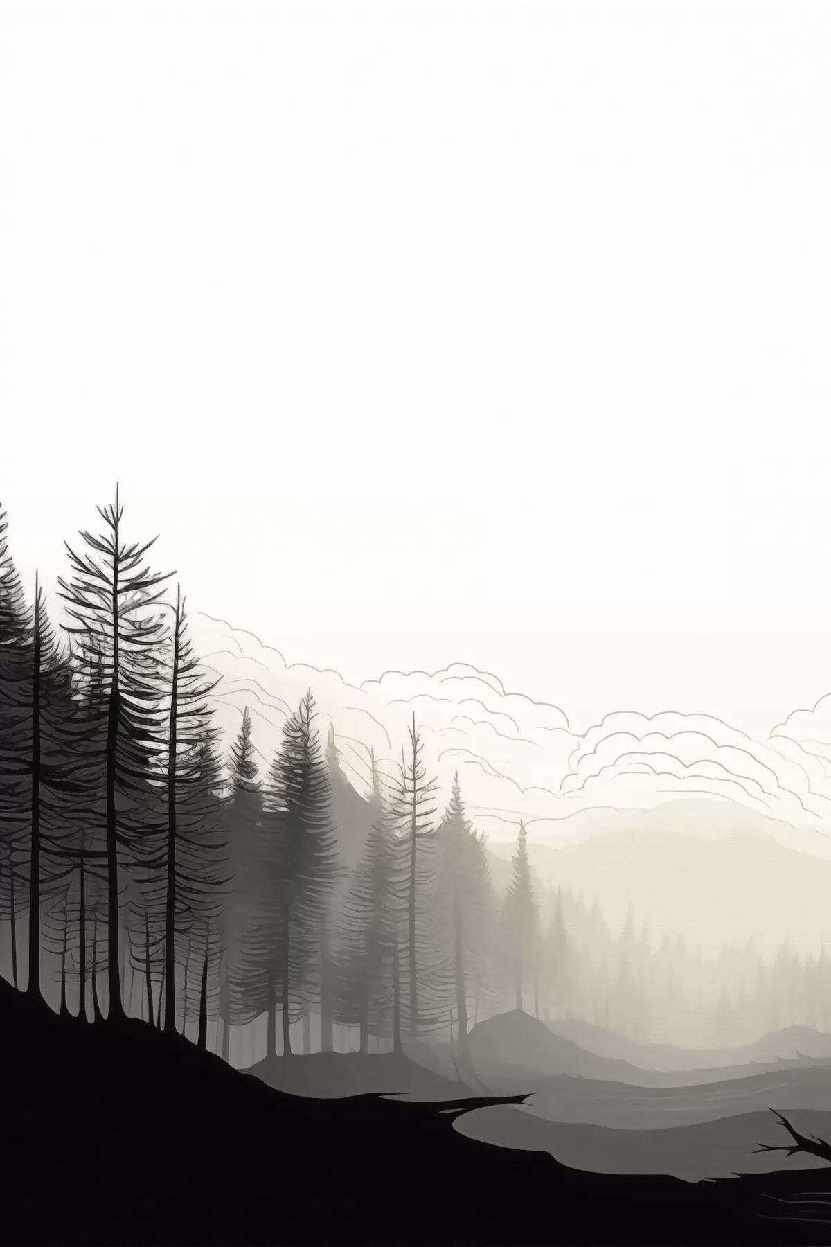 Wandbilder Wald im Nebel, minimalistisch Art. s48574