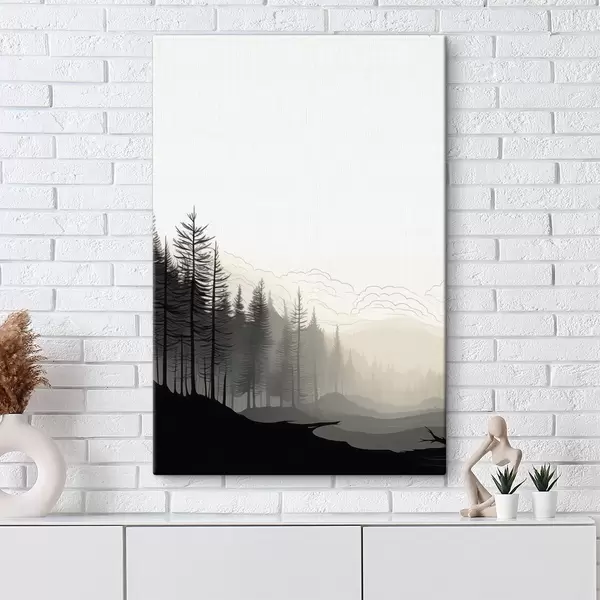 Wandbilder Wald im Nebel, minimalistisch s48574