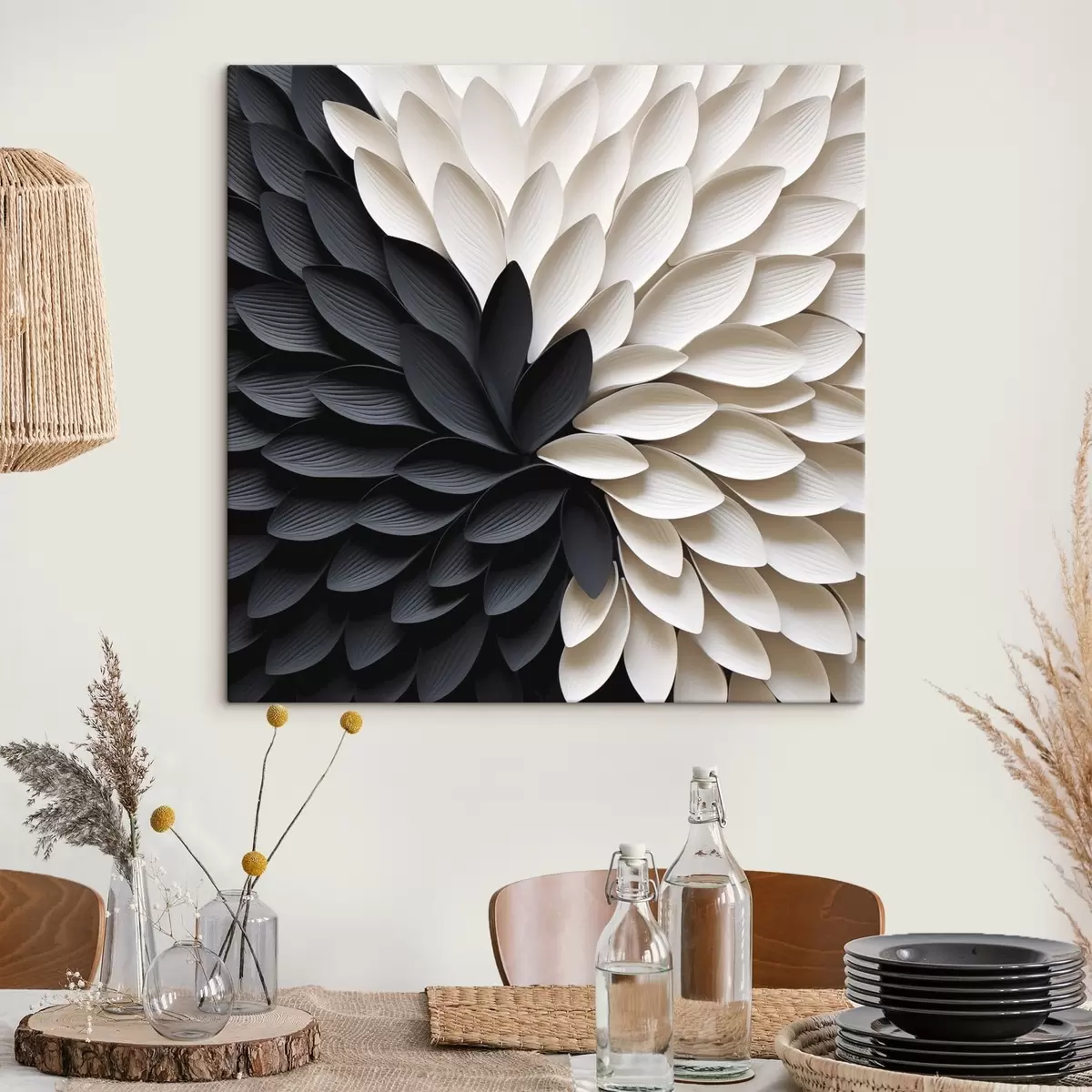Wandbilder Kontrastierende helle und dunkle Blütenblätter in Blütenform s48604
